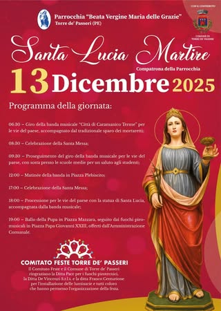 La processione con la statua di Santa Lucia alle ore 18 da piazza Plebiscito, il ballo della Pupa alle 19 in piazza Mazara e, a seguire, i fuochi piromusicali in piazza Papa Giovanni XXIII. Oggi Torre rivive la magia torna la magia e l'incanto dei tradizionali festeggiamenti della compatrona, Santa Lucia, appuntamento molto atteso dai Torresi e dai fedeli che arrivano anche dai paesi vicini per rivivere le sacre atmosfere miste a momenti di divertimento con gli spettacoli in piazza!