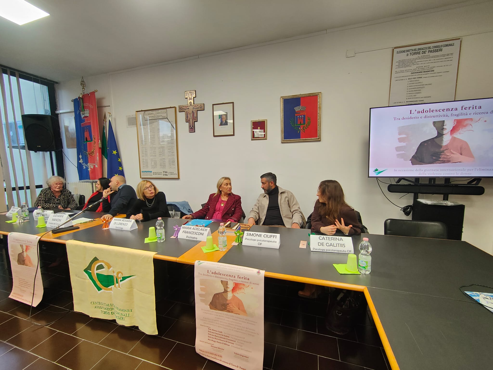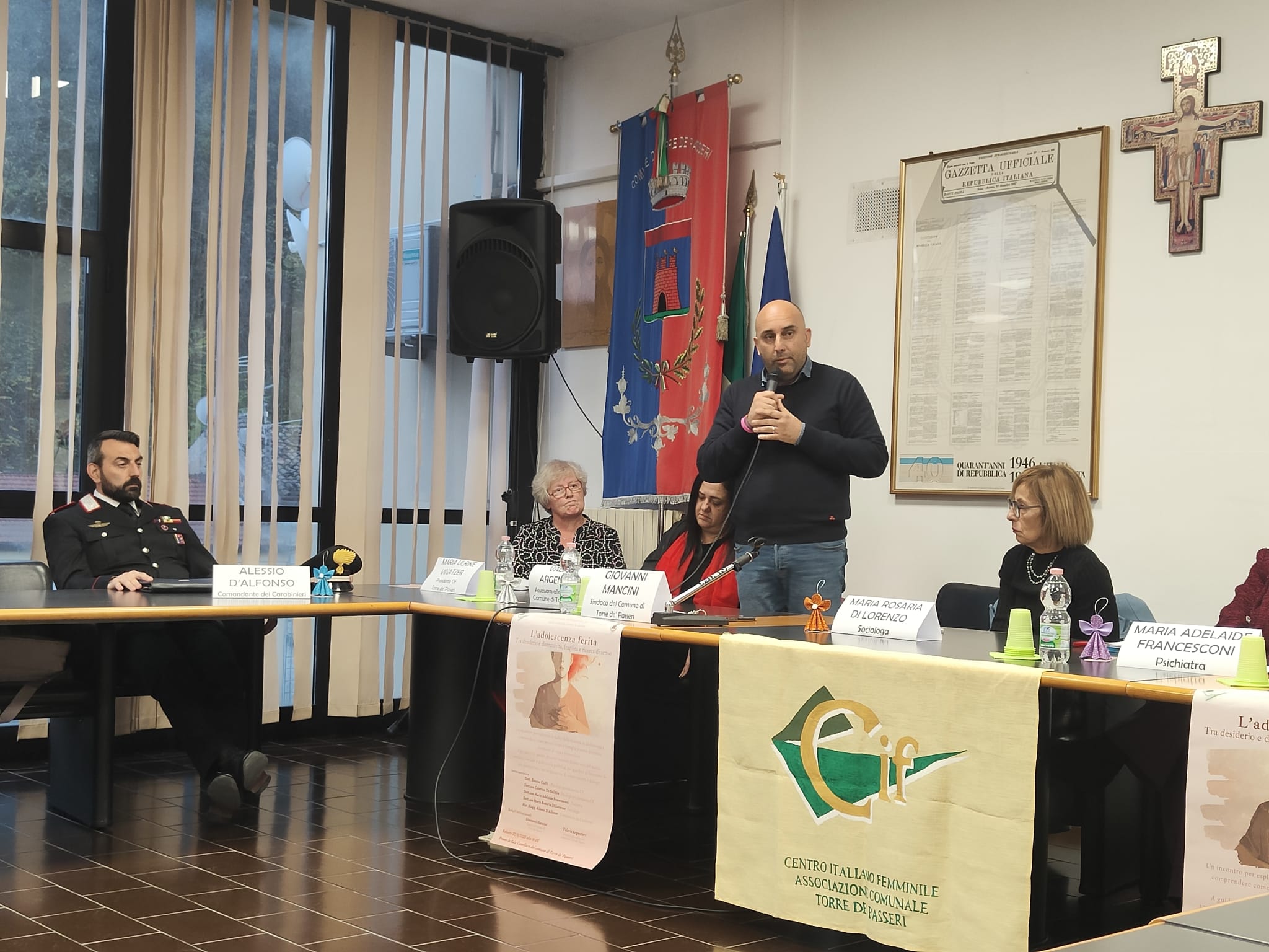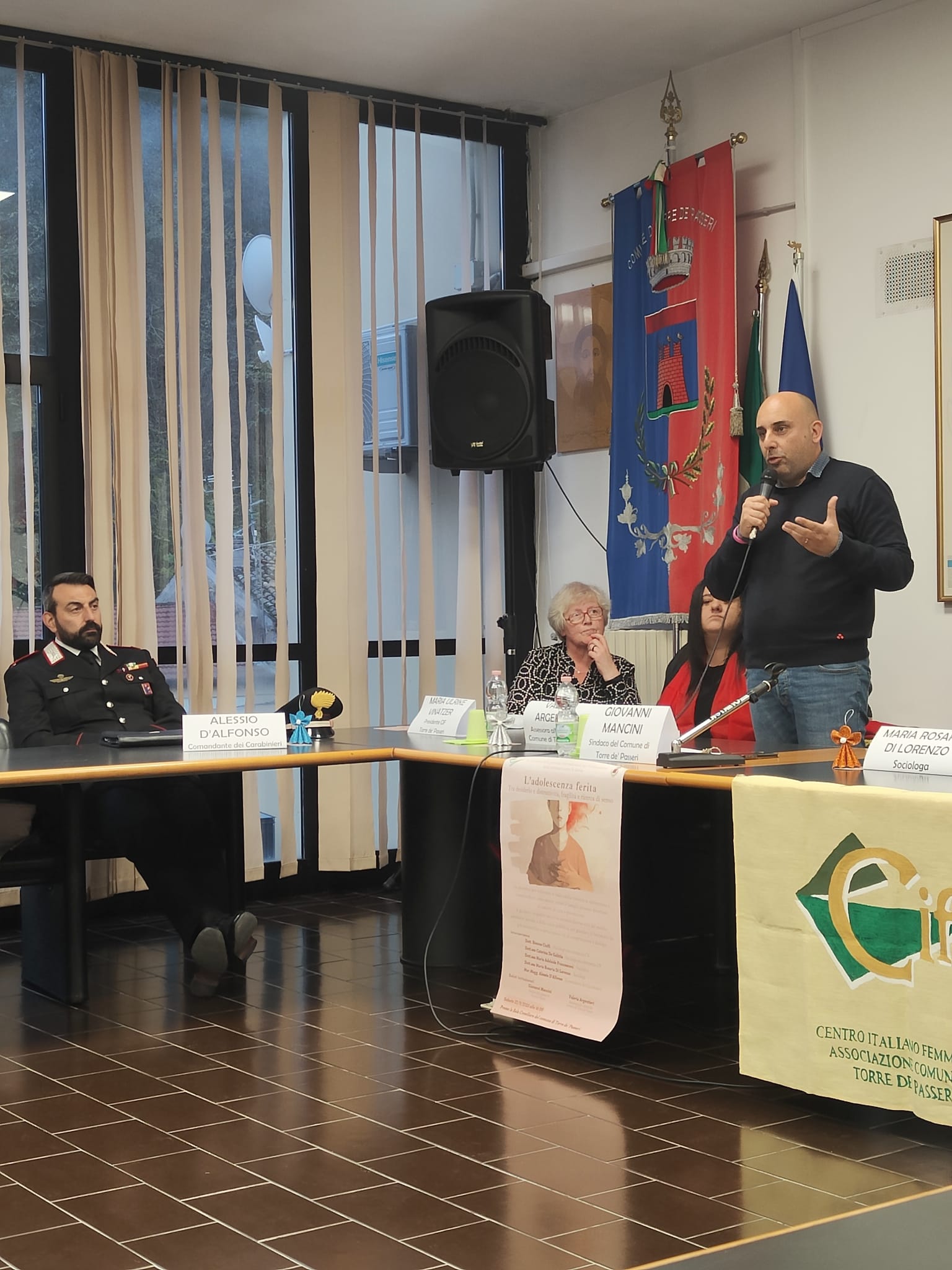 Con queste parole il sindacodi Torre de' Passeri, Giovanni Mancini, ha introdotto il convegno "L'adolescenza ferita. Tra desiderio e distruttività, fragilità e ricerca di senso", incontro promosso dal Cif (Centro Italiano Femminile) di Torre con l'Amministrazione comunale e svoltosi sabato 22 novembre 2025 nella sala consiliare alla presenza di esperti e una folla di cittadini.