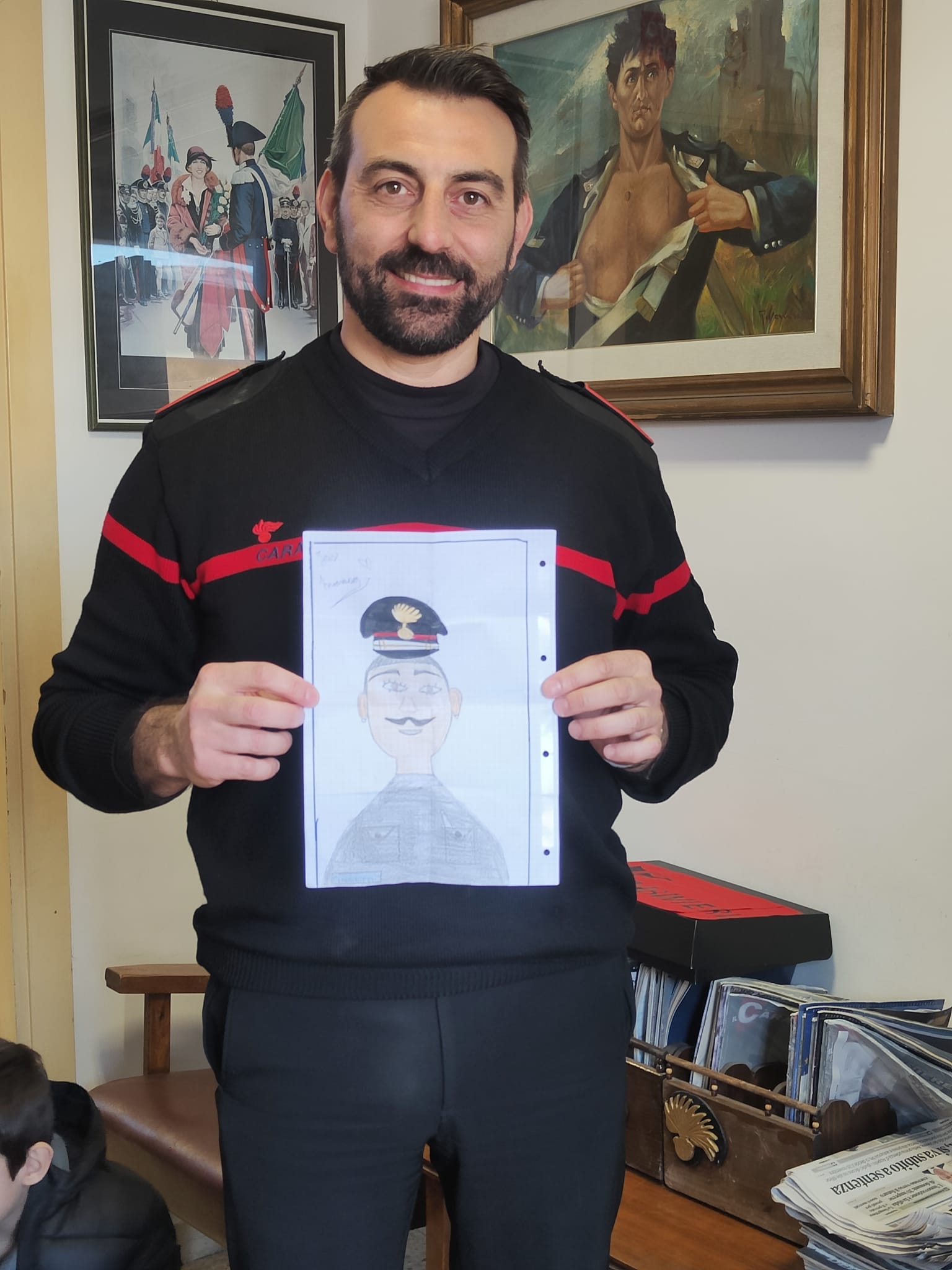 I bimbi, seduti a terra e attenti alle parole del maresciallo, degli altri militari presenti, del sindaco e degli educatori, hanno letto ognuno i propri pensieri sulle guerre che insanguinano il mondo e che uccidono i rappresentanti delle forze dell'ordine <persone coraggiose che sono morte per la pace>, <poveri carabinieri morti troppo giovani>, <i criminali sono la parte scura della vita, i buoni la parte chiara>, <spero niente più vittime, viva i carabinieri>. Quindi il dono dei loro ritratti (disegni colorati) al sindaco Mancini e al maresciallo D'Alfonso e i pensierini lasciati in caserma quale ricordo della visita odierna della scolaresca.