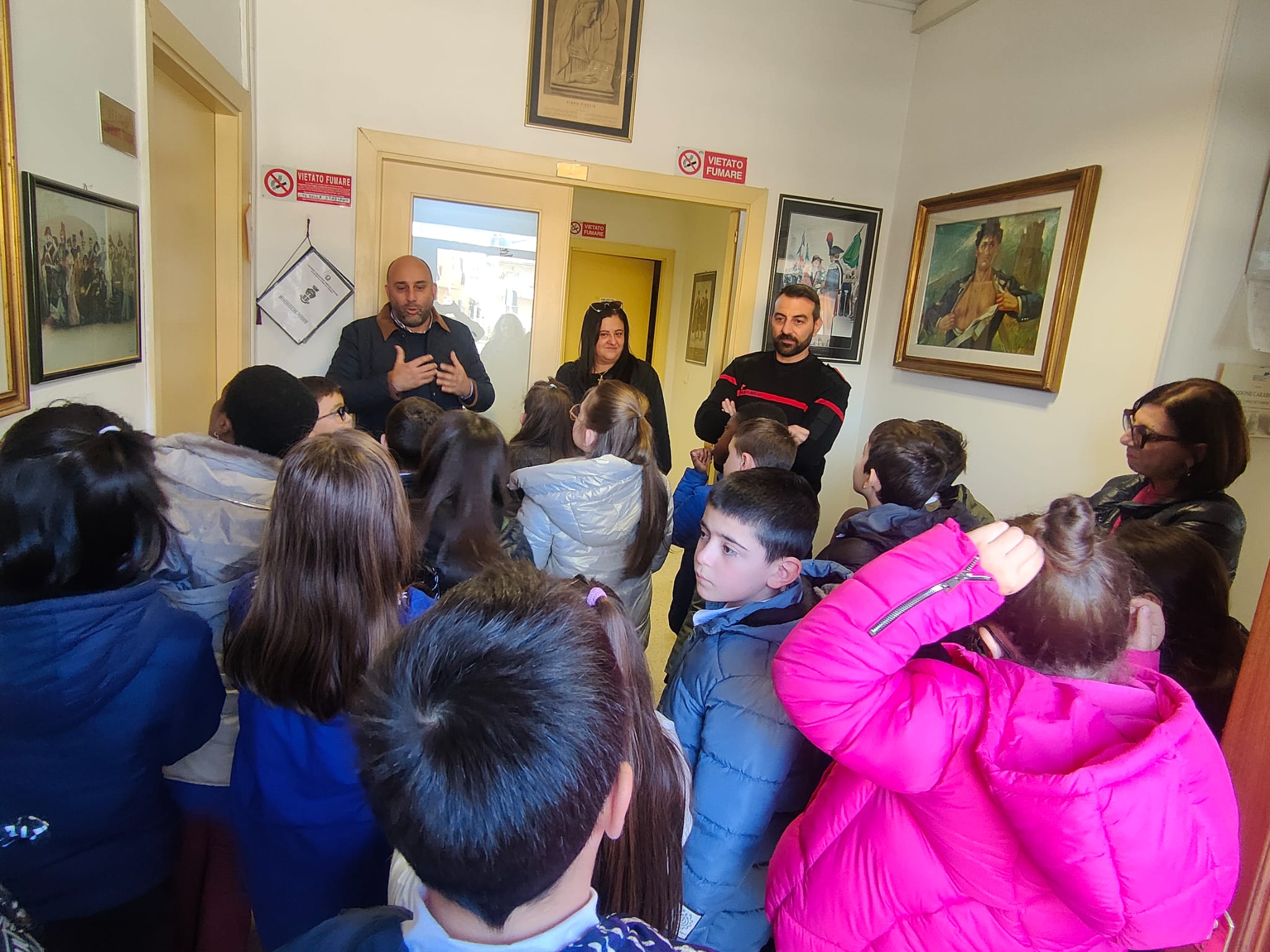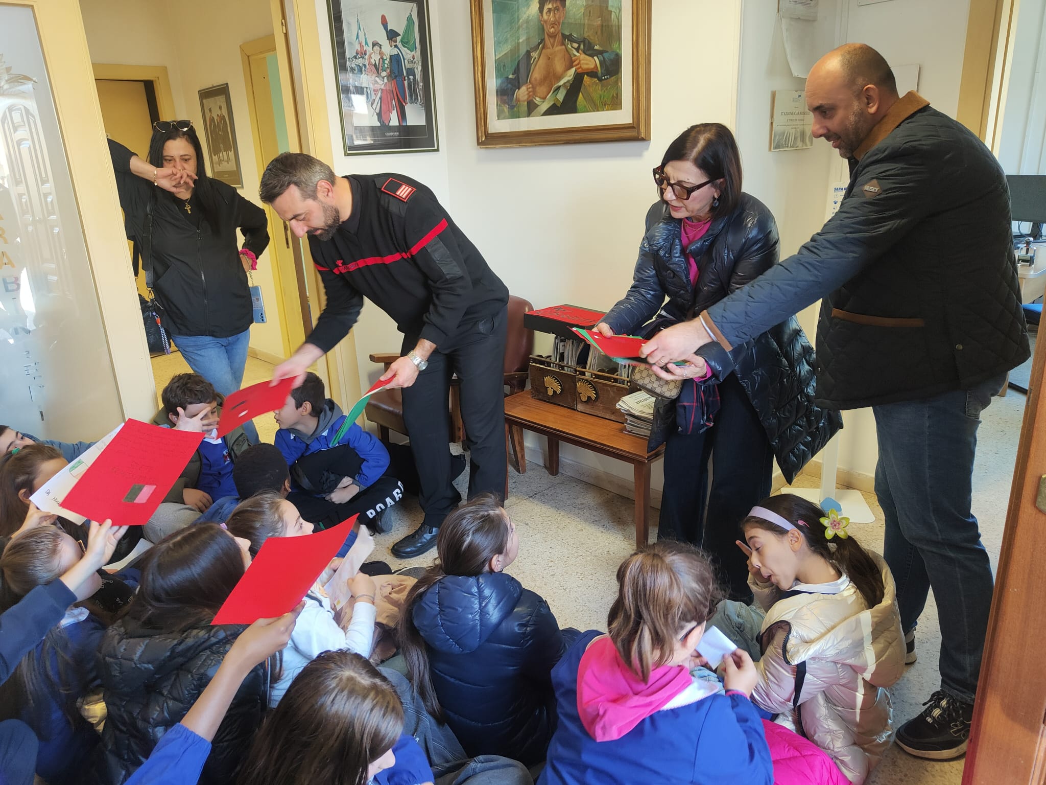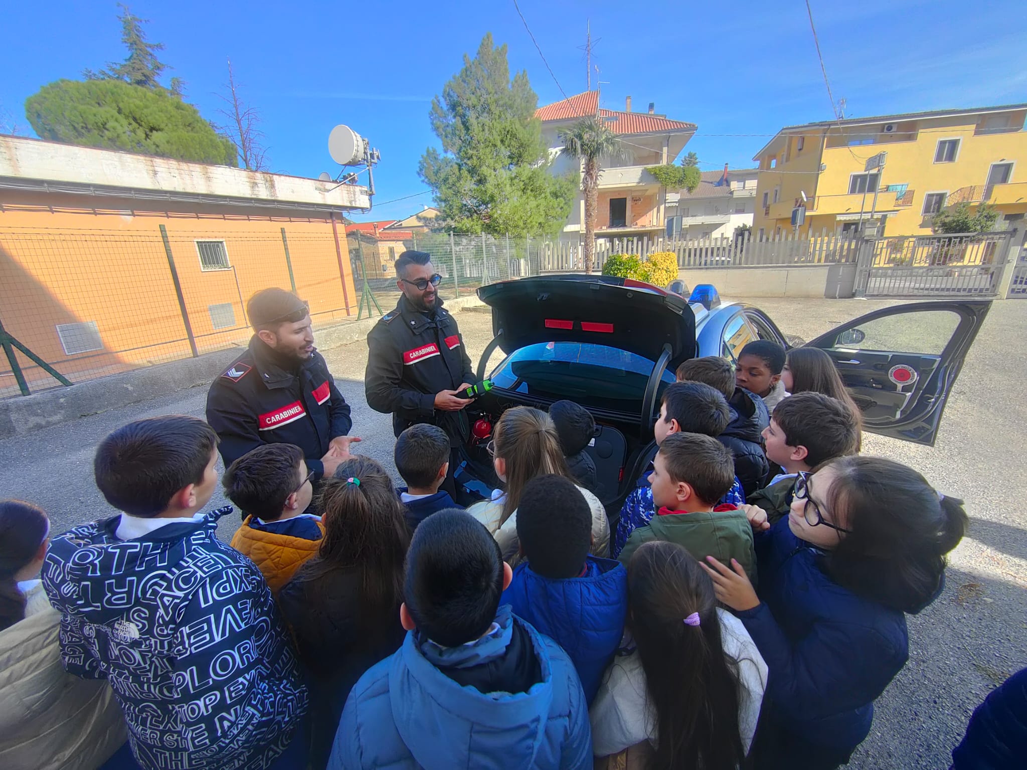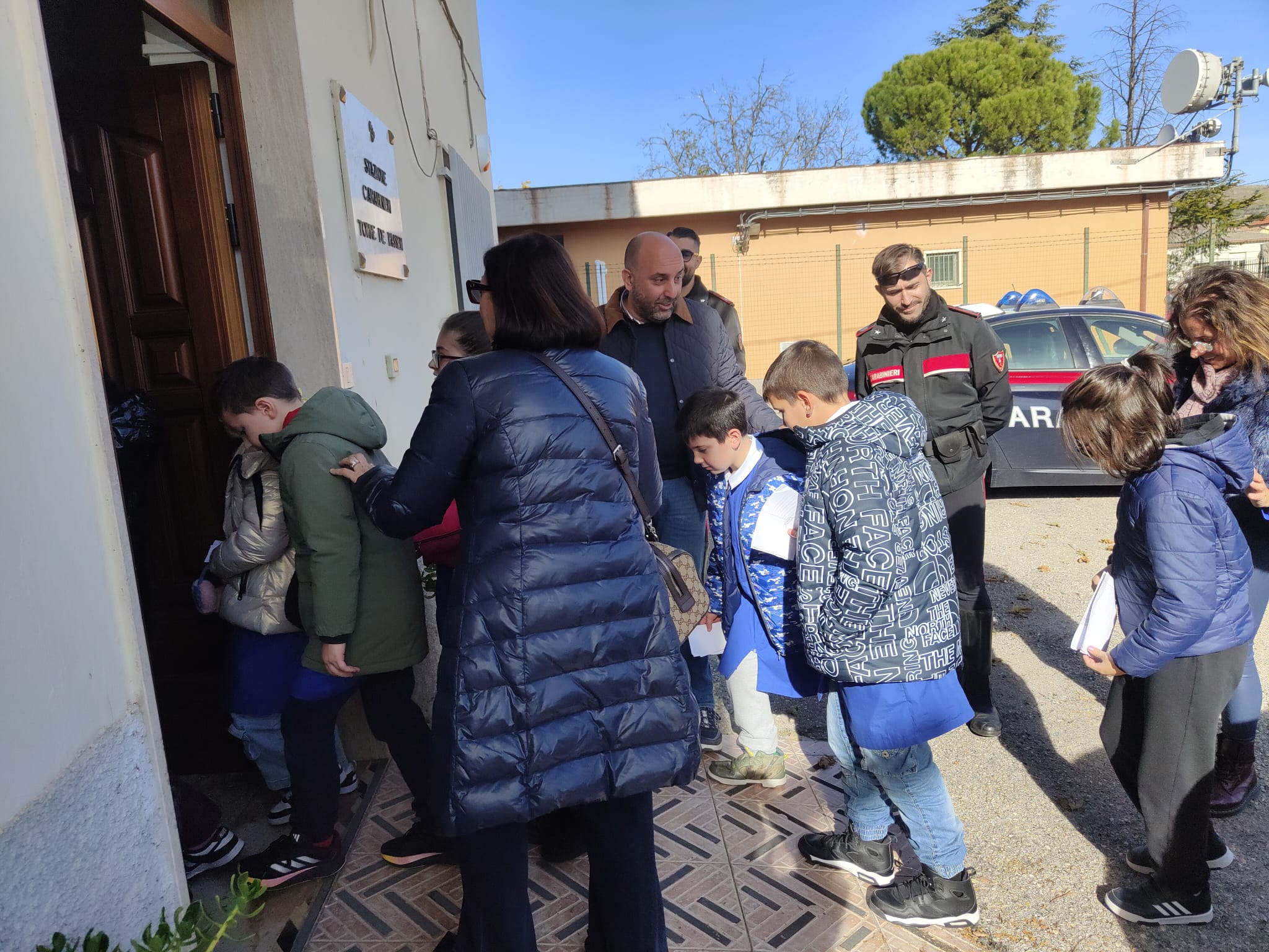 Gli alunni, una ventina, sono stati accolti dal sindaco Giovanni Mancini affiancato dall'assessore alla Cultura, Valeria Argentieri, e dal comandante della stazione, maresciallo maggiore Alessio D'Alfonso, che ha tenuto una lezione sulla sicurezza, sui compiti e l'operatività quotidiana dei militari dell'Arma a presidio del territorio, sulla nascita del Corpo, sugli eroi che hanno dato la vita per la vita per la libertà, come Salvo D'Acquisto, e sui dispositivi di difesa e di controllo in uso ai carabinieri che hanno particolarmente entusiasmato gli studenti, accompagnati dalle maestre Daniela Quatraro e Felicita Flamminio.