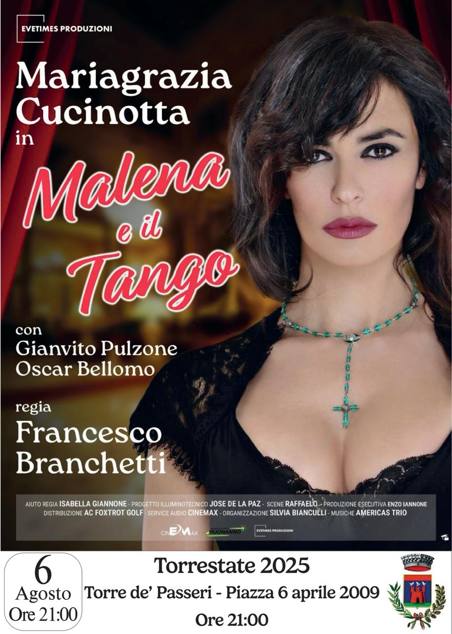 I Torresi aspettano con curiosità e affetto Maria Grazia Cucinotta che questa sera alle ore 21, in piazza 6 Aprile 2009, davanti al municipio, incontrerà i suoi fan prima di calcare le scene di "Malena e il tango" con Gianvito Pulzone e Oscar Bellomo per la regia di Francesco Branchetti e la direzione artistica di Federica Vicino.