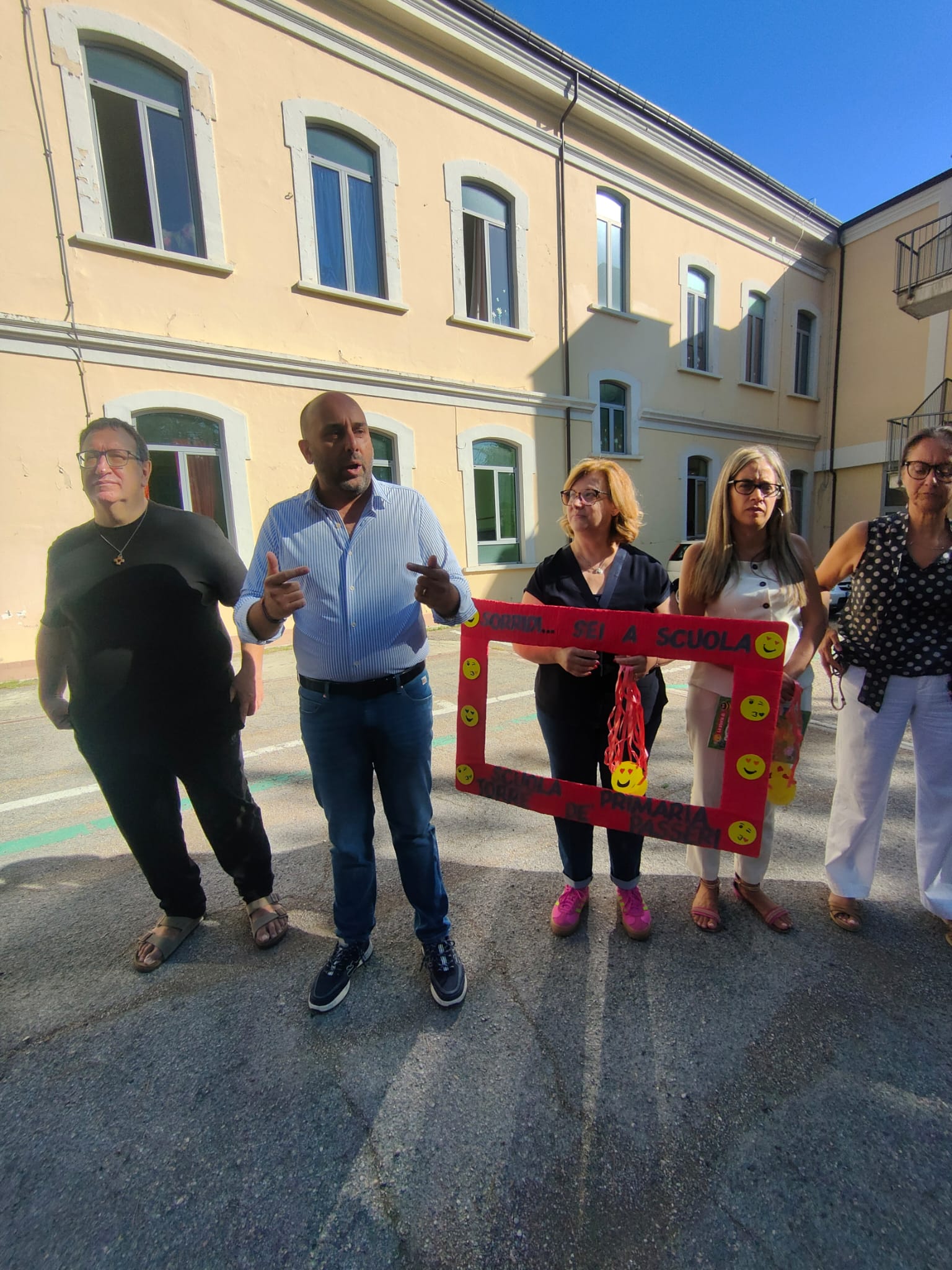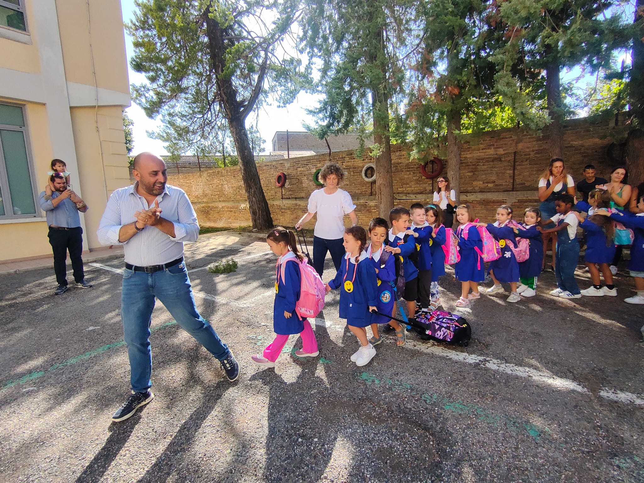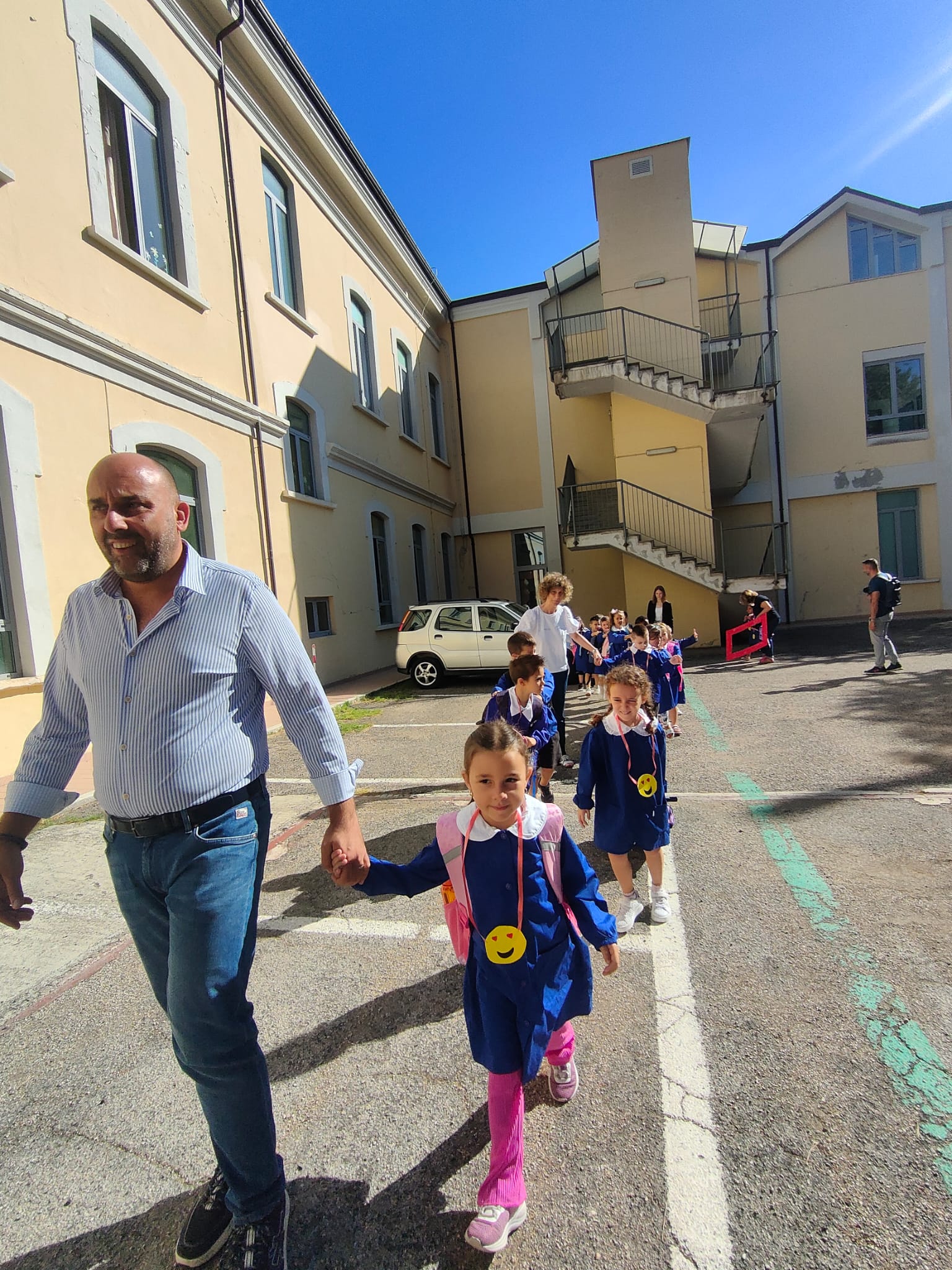 Rientro in classe tra abbracci, lacrime e commozione. Il sindaco Giovanni Mancini, affiancato dall'assessore Alessandra Bortoletti e il consigliere Manuela Cordesco, come ogni anno, ha augurato un buon anno scolastico a tutti e incontrato gli studenti uno per uno, classe per classe (dall'infanzia alle medie), stretto mani ai genitori, docenti, personale Ata e salutato la preside del comprensivo "Alberto Manzi", Antonella Pupillo.
