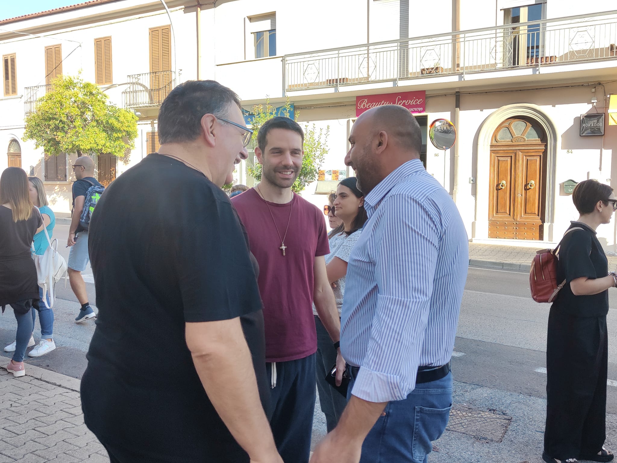 Al suo fianco i due parroci che a breve si passeranno il testimone. Don Massimo Di Lullo che tra qualche giorno lascerà la parrocchia della Beata Vergine Maria delle Grazie dopo cinque anni di servizio, per andare a guidare la comunità del Rosario a Pescara, accompagnato da don Matteo Mosca che prenderà servizio a Torre ufficialmente il prossimo 18 settembre.