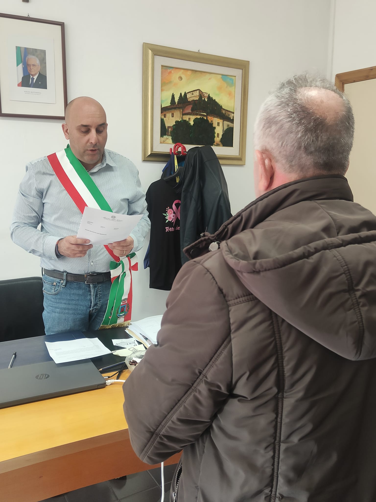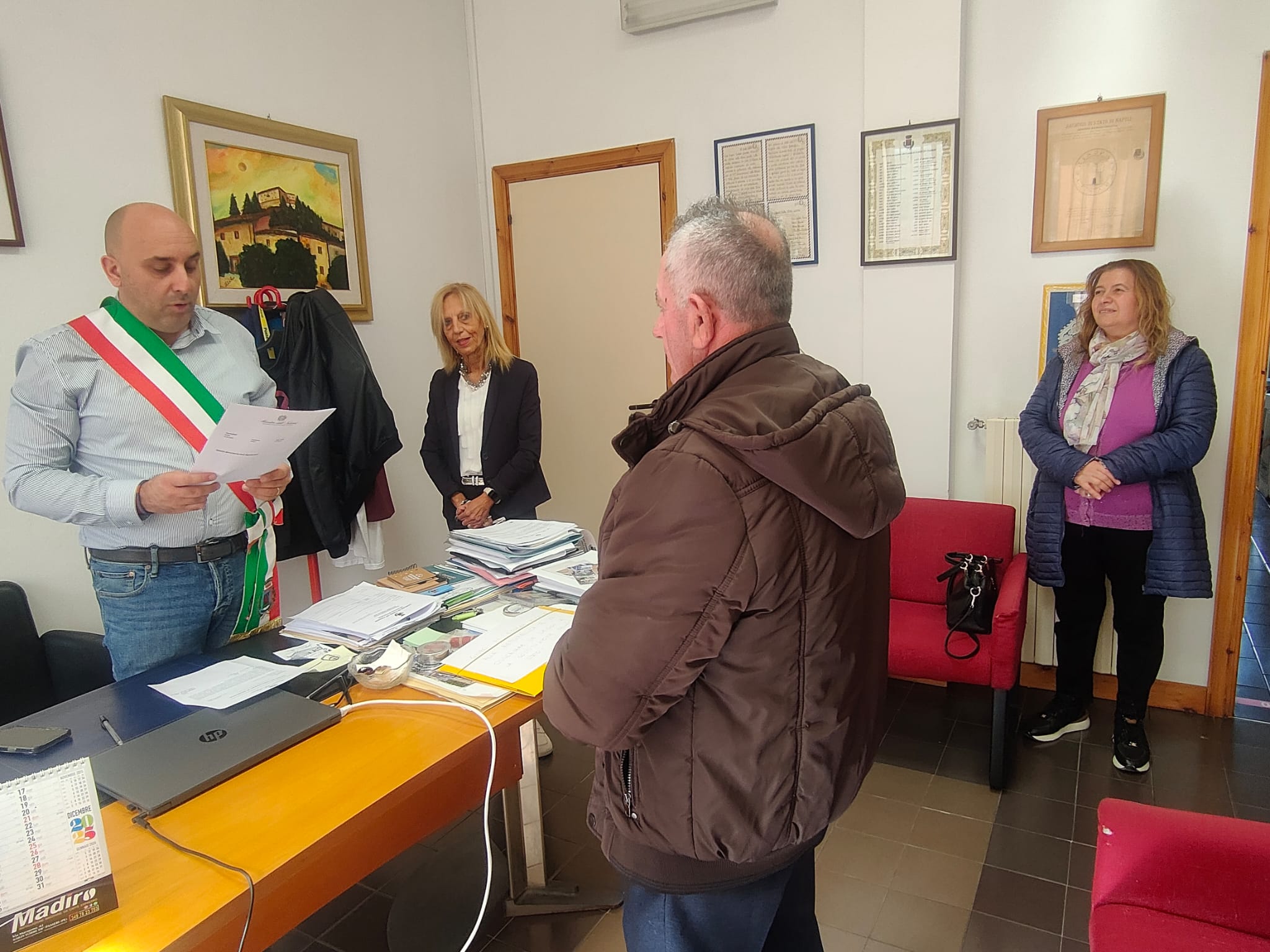 Il sindaco Giovanni Mancini, durante una breve cerimonia svoltasi stamani in municipio, ha consegnato la cittadinanza italiana a Shkelqim Muca, nativo di Bago in Albania, accompagnato dalla moglie Vjollica Muca.
