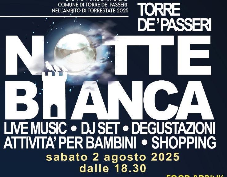Stasera, sabato 2 agosto, il grande ritorno della Notte Bianca a Torre de' Passeri!!
