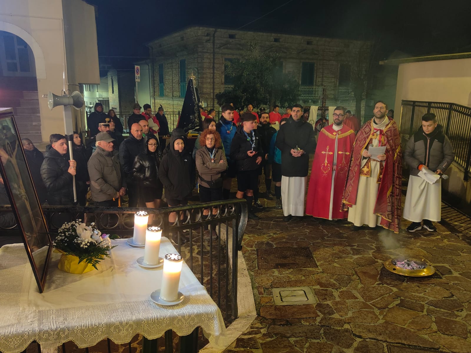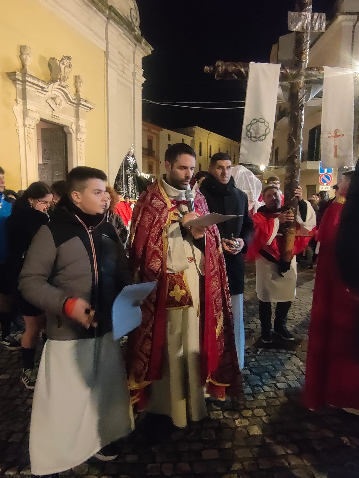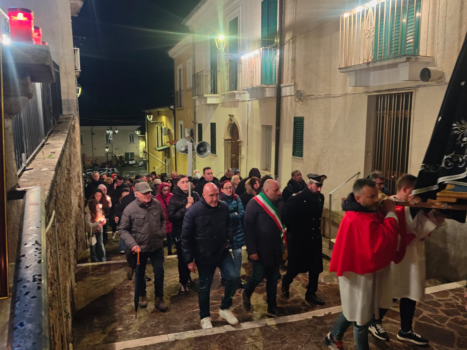 Il sindaco Giovanni Mancini, affiancato dal vice Piero Di Giulio, dall'assessore Antonio Caldarelli, dai consiglieri Lia Dell'Oso, Manuela Cordesco e Silvio De Dominicis, ha partecipato, emozionato, alla processione del Cristo Morto circondato da una folla di centinaia di persone, commossa e silente. Accanto a lui il comandante della stazione dei carabinieri, il maresciallo maggiore Alessio D'Alfonso. Il corteo, illuminato dalla luce delle fiaccole, è stato aperto dalle letture del parroco della chiesa della Beata Vergine Maria delle Grazie, don Matteo Mosca, attorniato dai tanti giovani del paese e con il gruppo alpini.