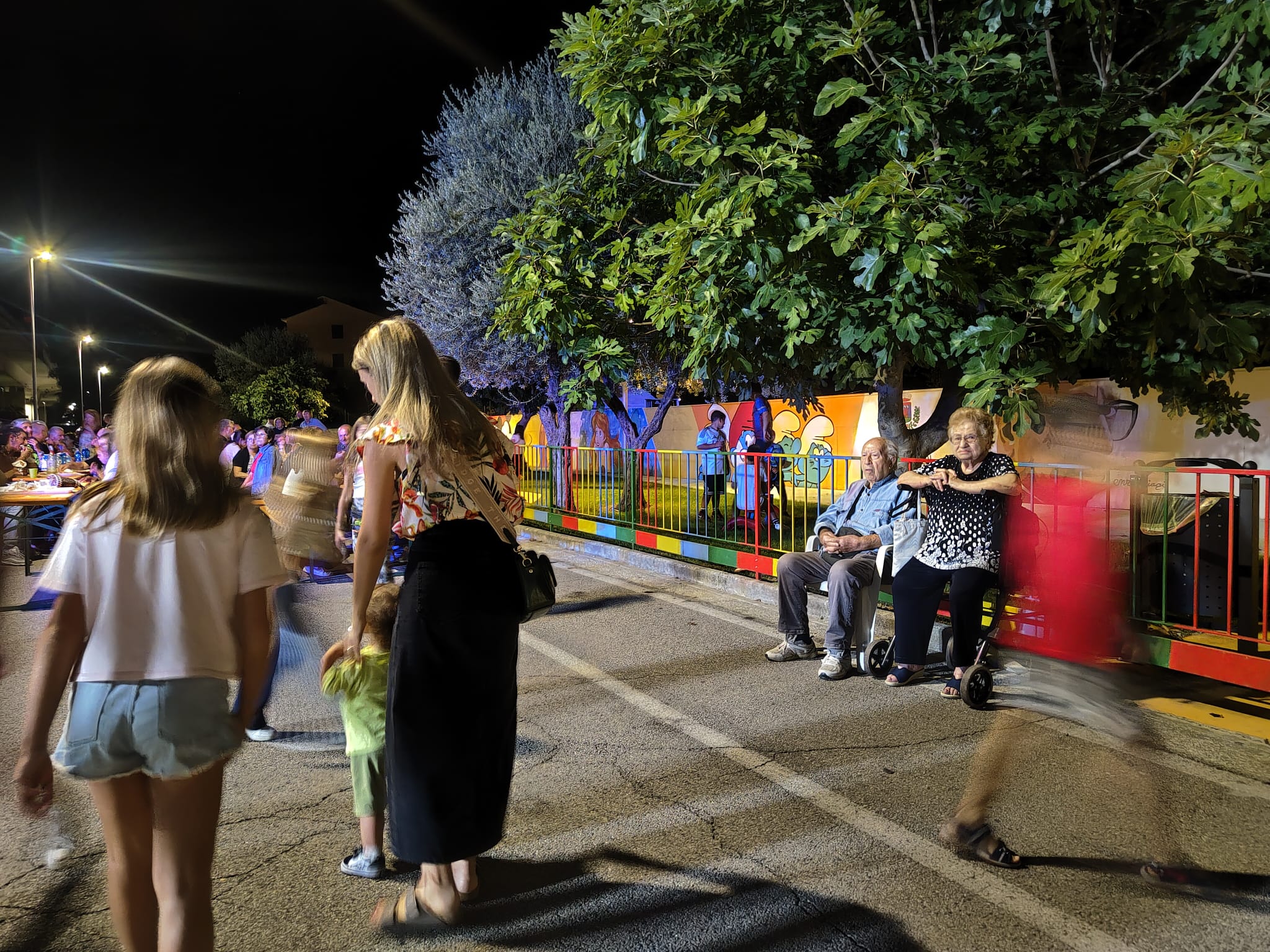 Una festa di quartiere con i bambini che giocavano a pallone in strada, (chiusa al traffico) come accadeva un tempo, e i grandi a ballare e degustare panuozzi con provola e patatine.