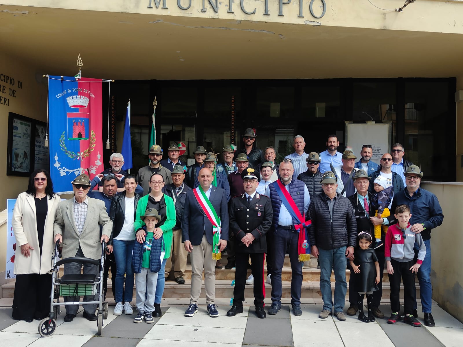 Nelle foto di repertorio: il sindaco Giovanni Mancini con gli amministratori, le autorità locali e il gruppo Alpini di Torre coordinato da Mario Di Bartolomeo
