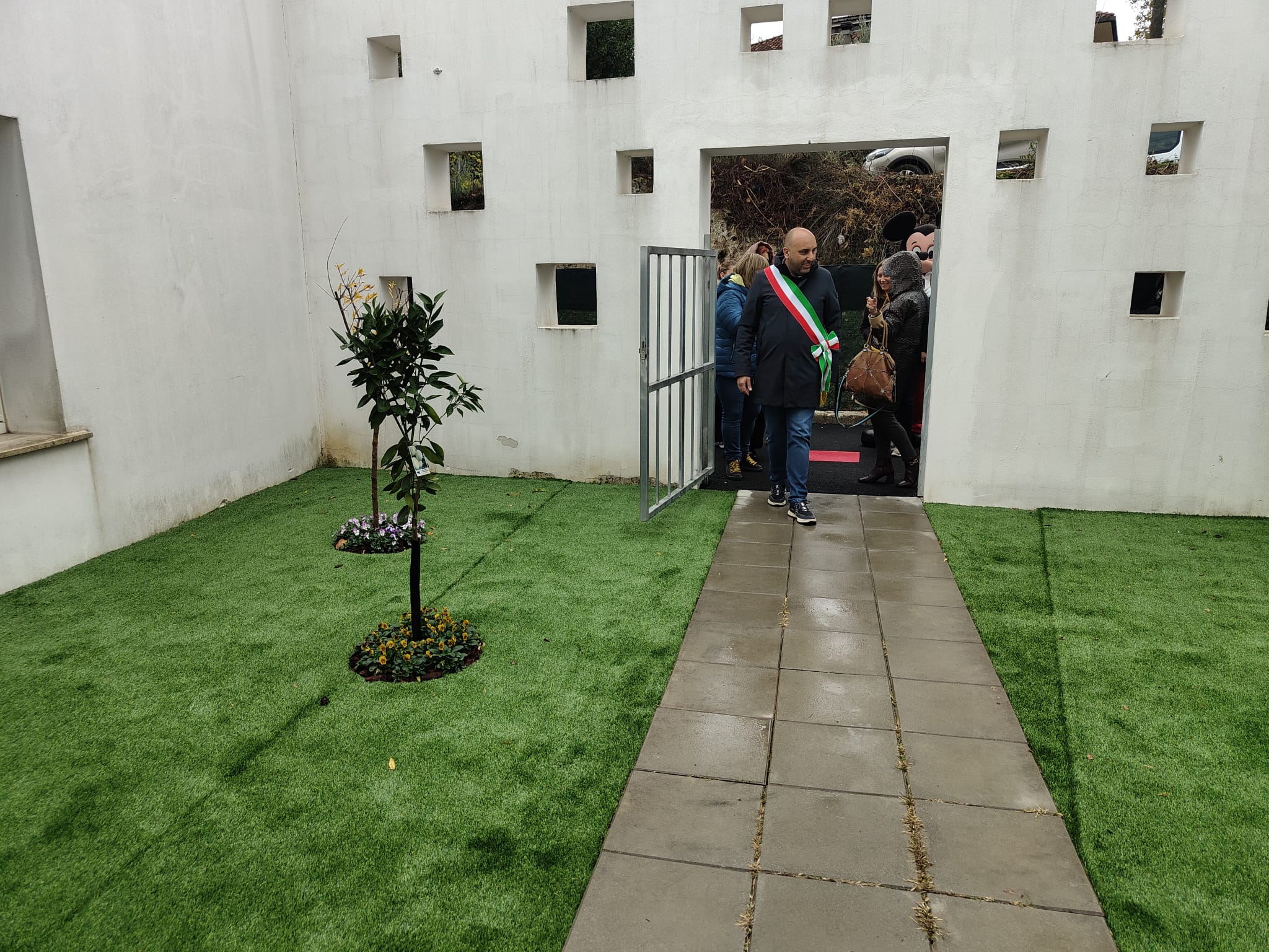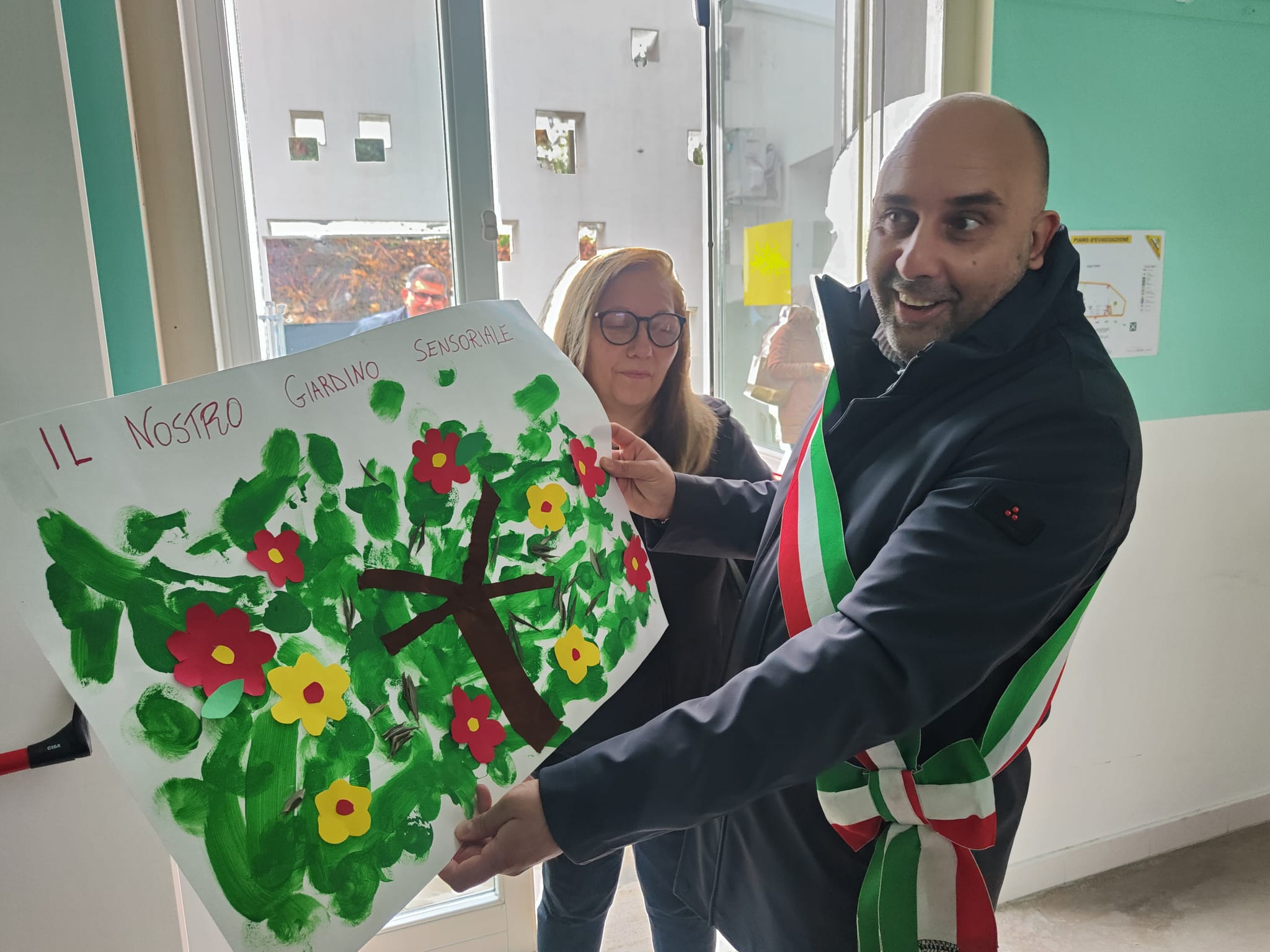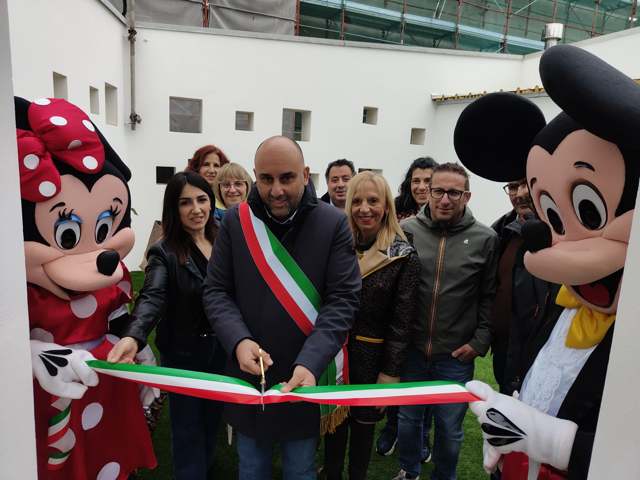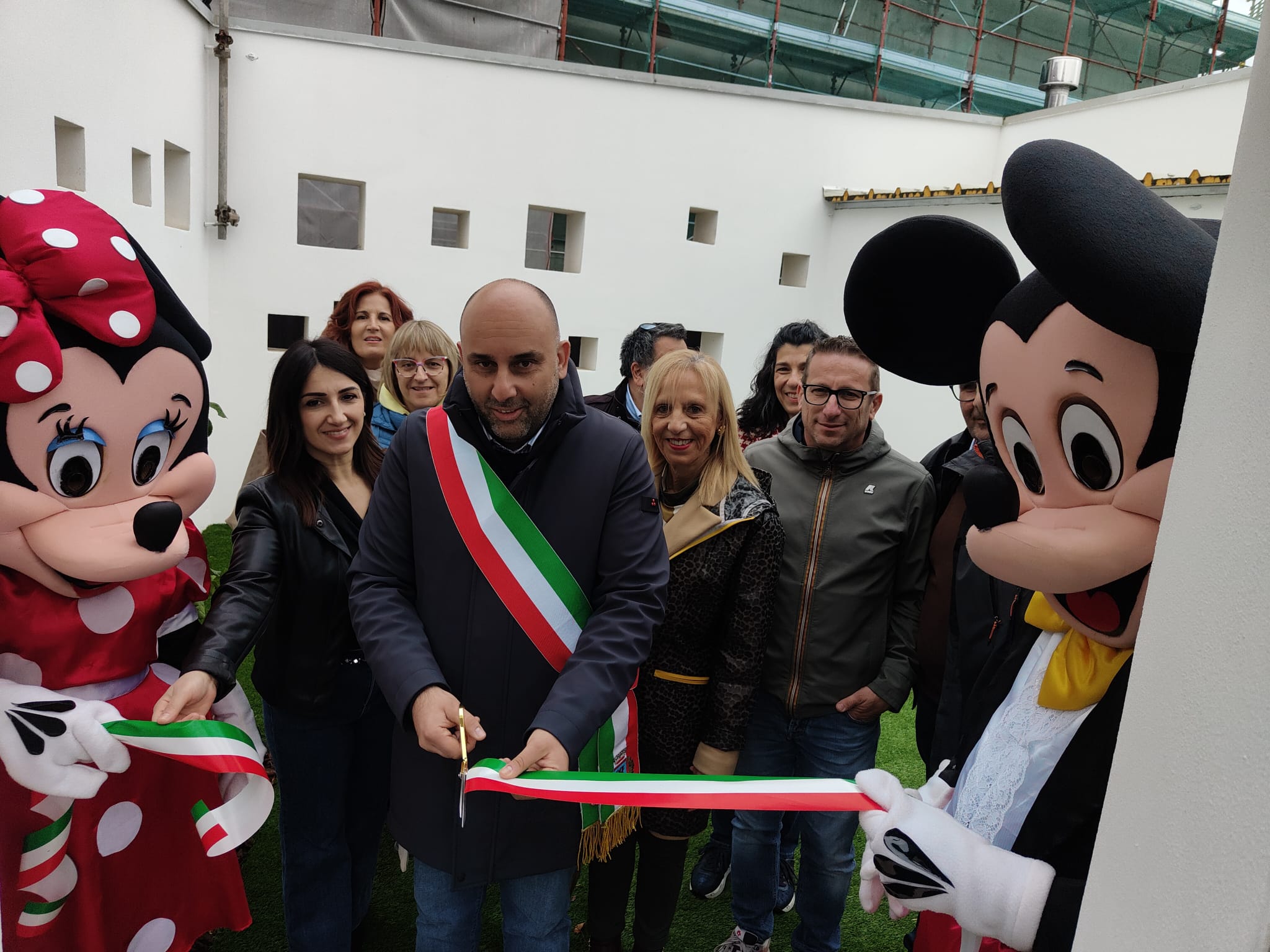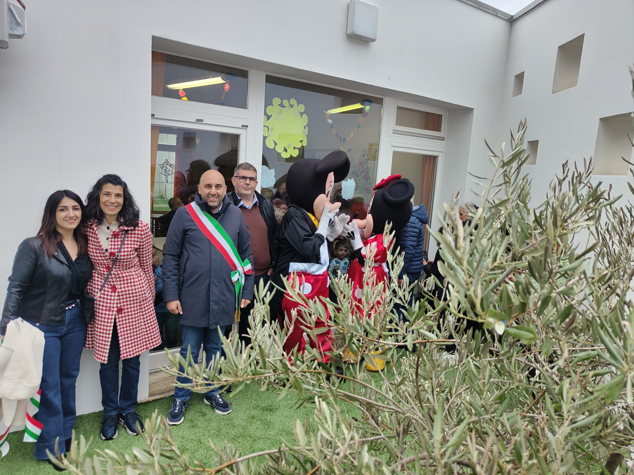 La voglia è quella di tornare bambini e calpestare il prato verde del giardino sensoriale con alberi da frutto, mandarino, arancio, limone e melograno, violette multicolori e piante aromatiche, con piccole vasche tattili di pietrisco e sabbia, un nuovo ingresso asfaltato e un percorso educativo di simboli e numeri colorati, inaugurati stamani dal sindaco Giovanni Mancini e dall'Amministrazione comunale che ha trasformato in realtà il progetto educativo comunitario da zero a 6 anni "Semi di futuro".