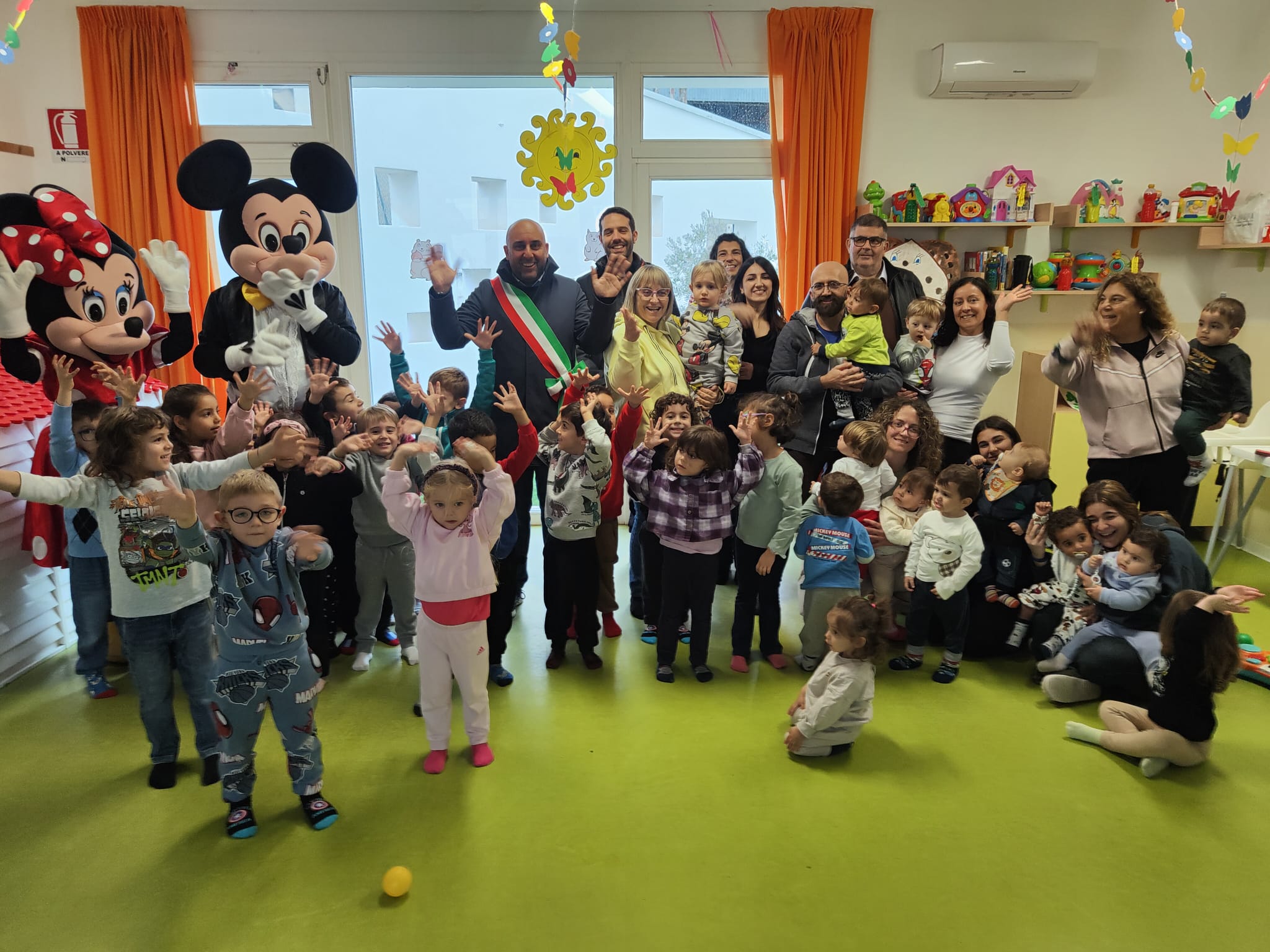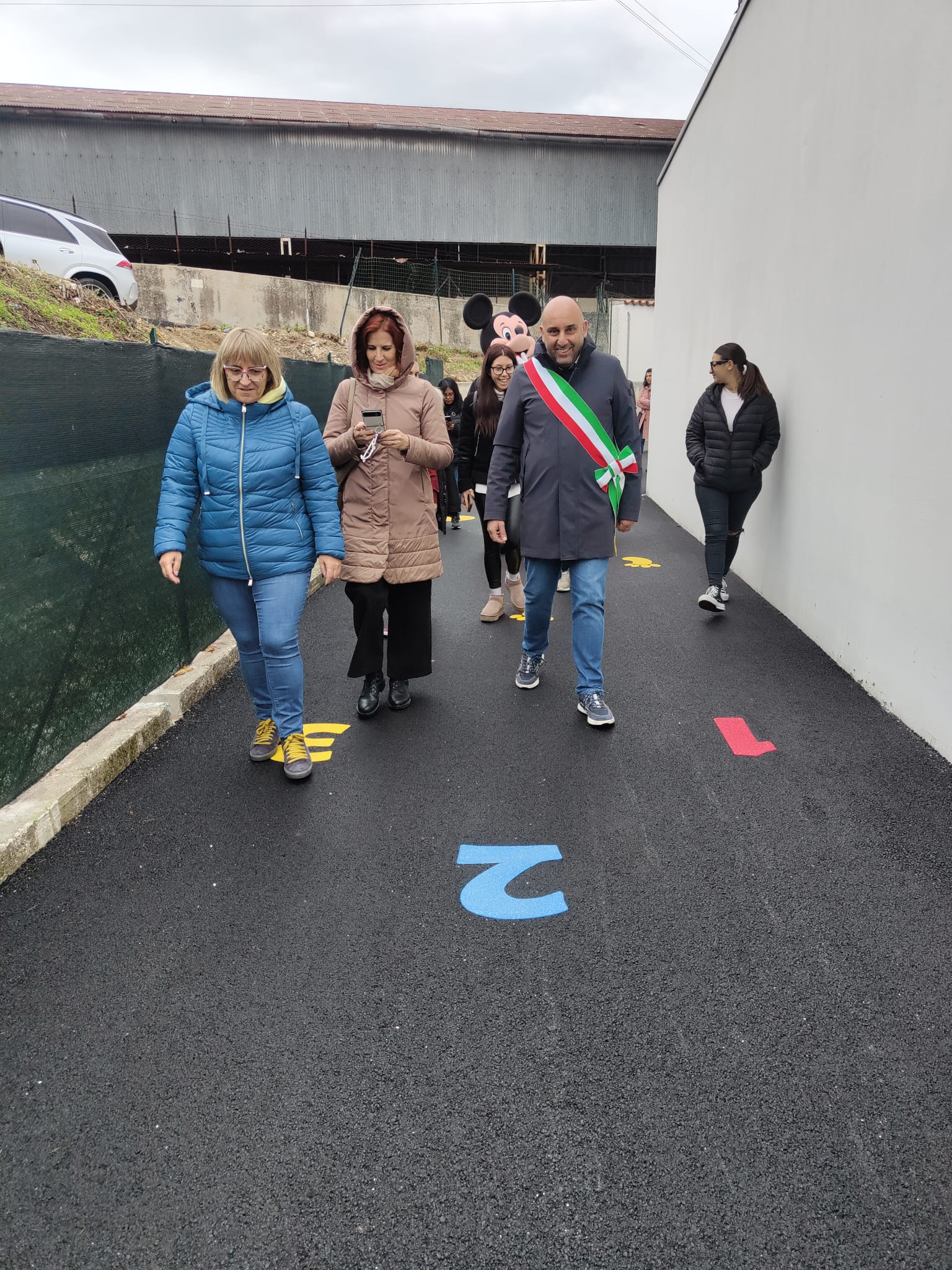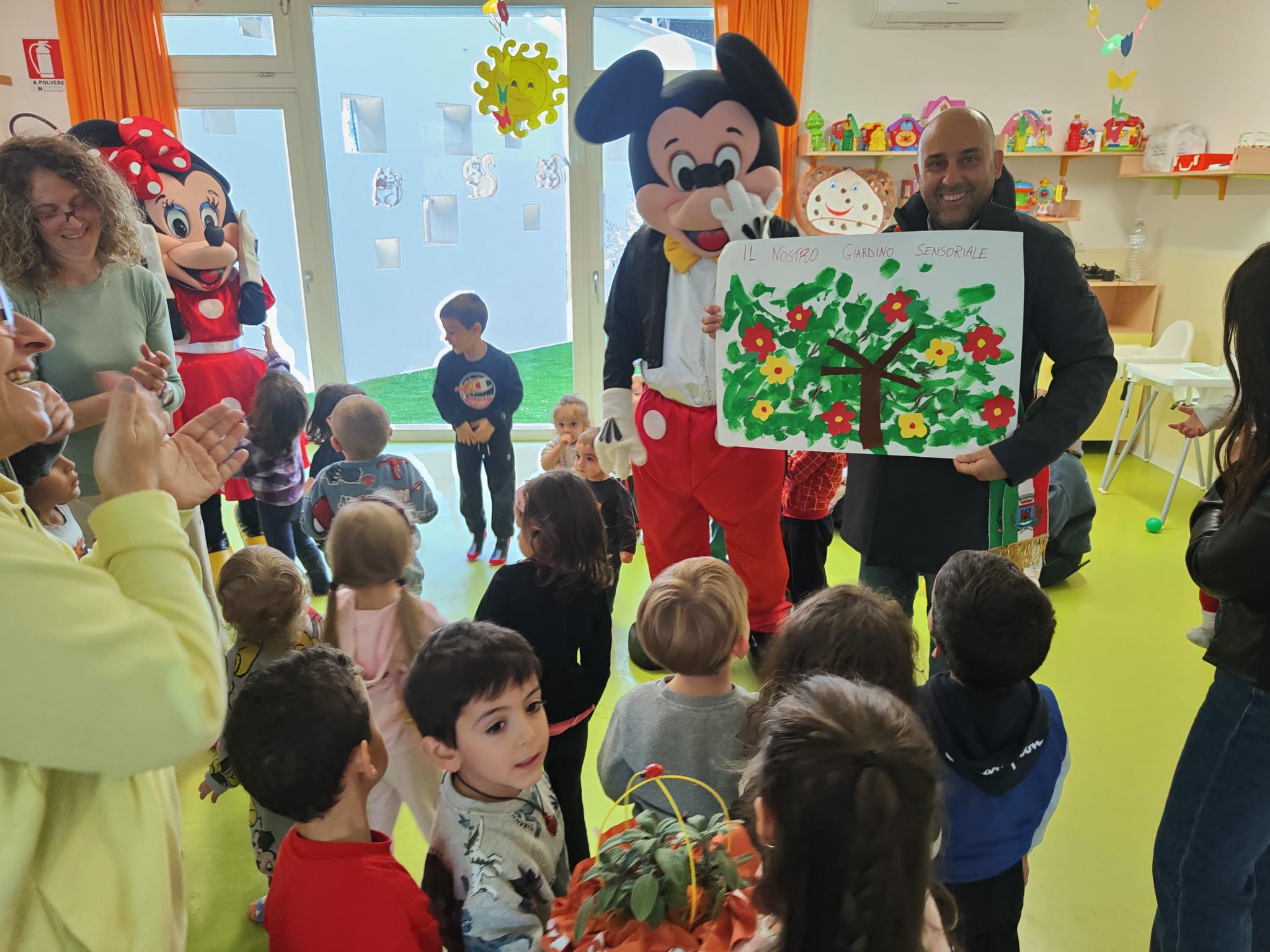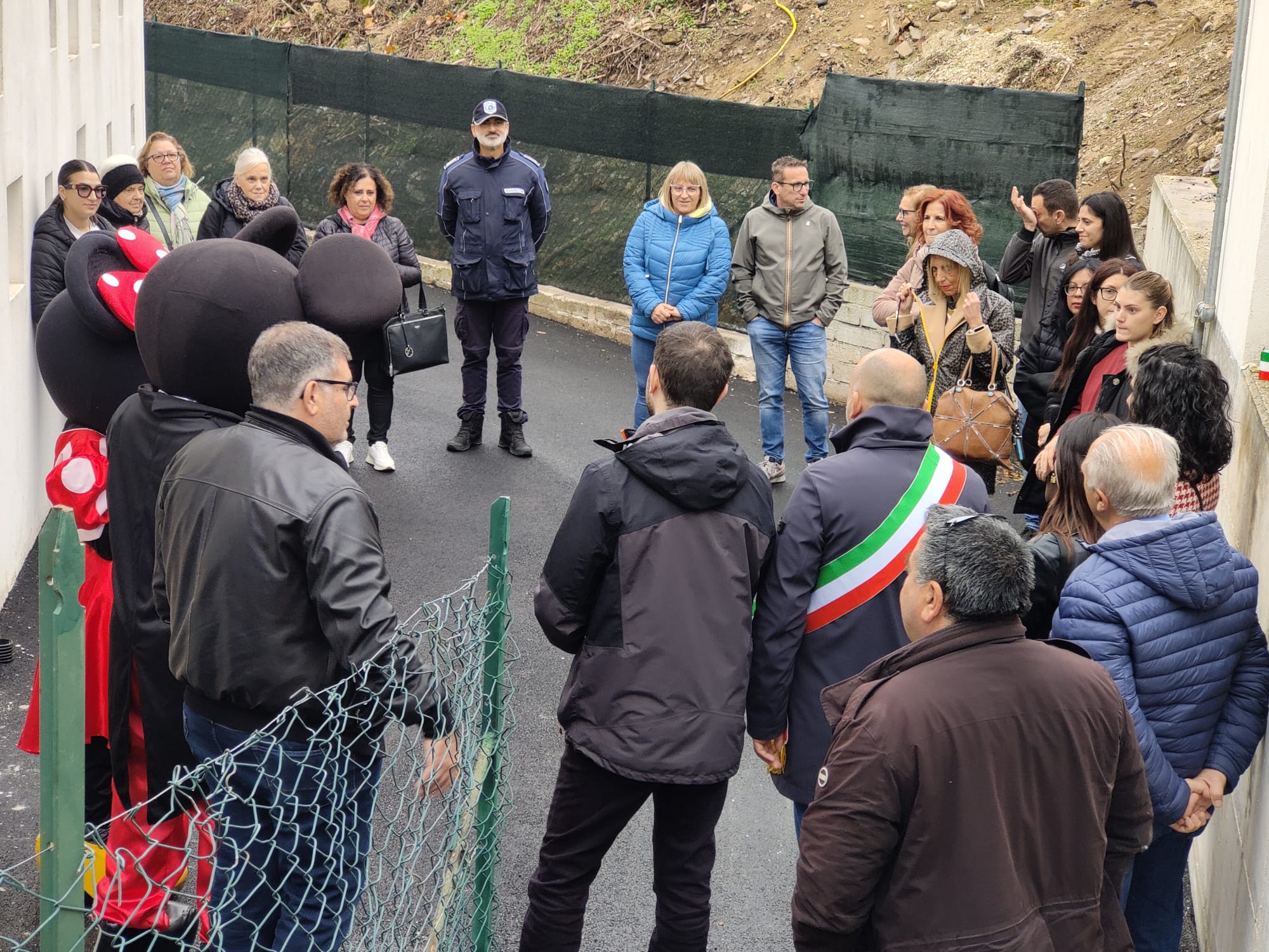 La voglia è quella di tornare bambini e calpestare il prato verde del giardino sensoriale con alberi da frutto, mandarino, arancio, limone e melograno, violette multicolori e piante aromatiche, con piccole vasche tattili di pietrisco e sabbia, un nuovo ingresso asfaltato e un percorso educativo di simboli e numeri colorati, inaugurati stamani dal sindaco Giovanni Mancini e dall'Amministrazione comunale che ha trasformato in realtà il progetto educativo comunitario da zero a 6 anni "Semi di futuro".