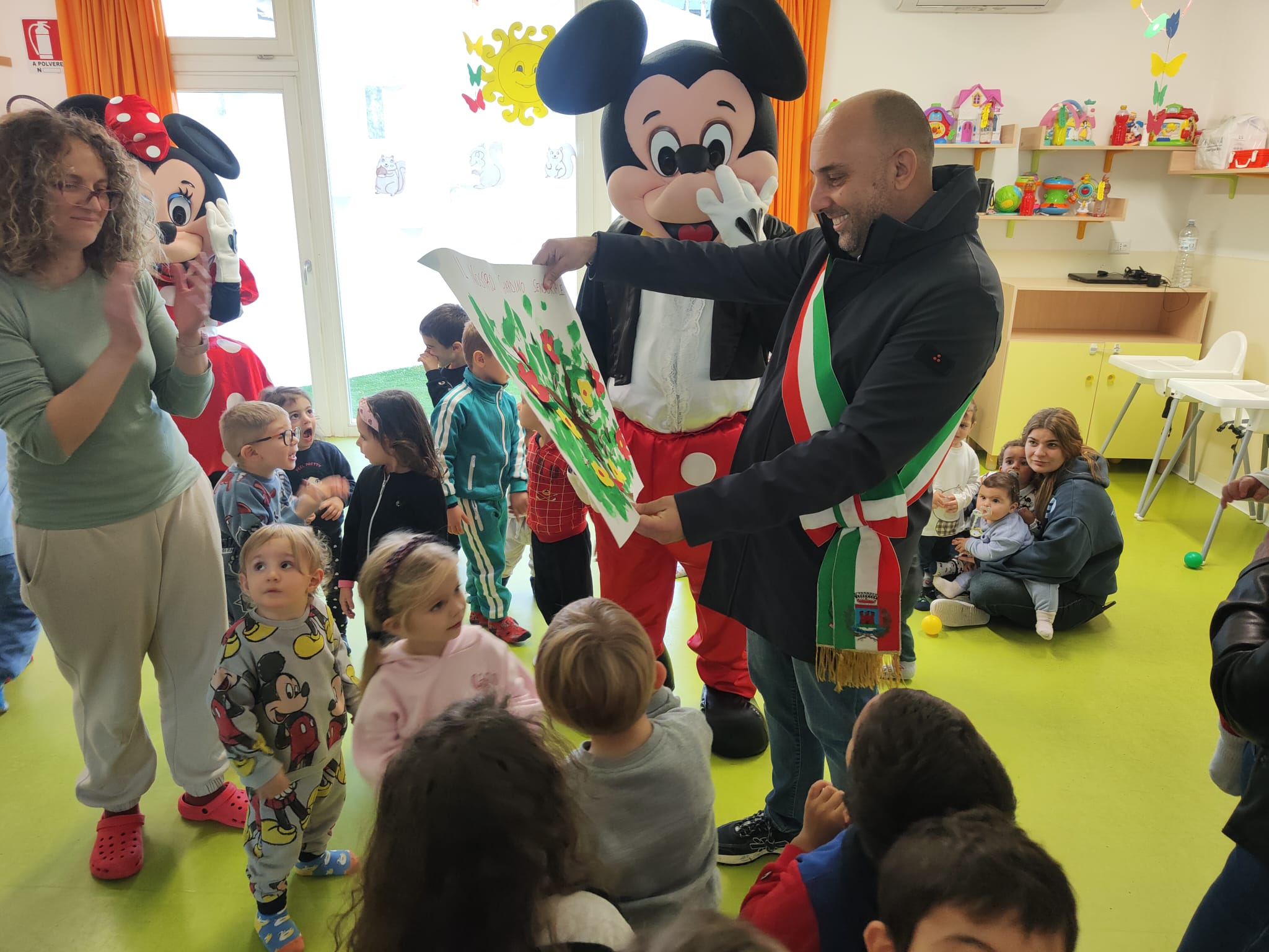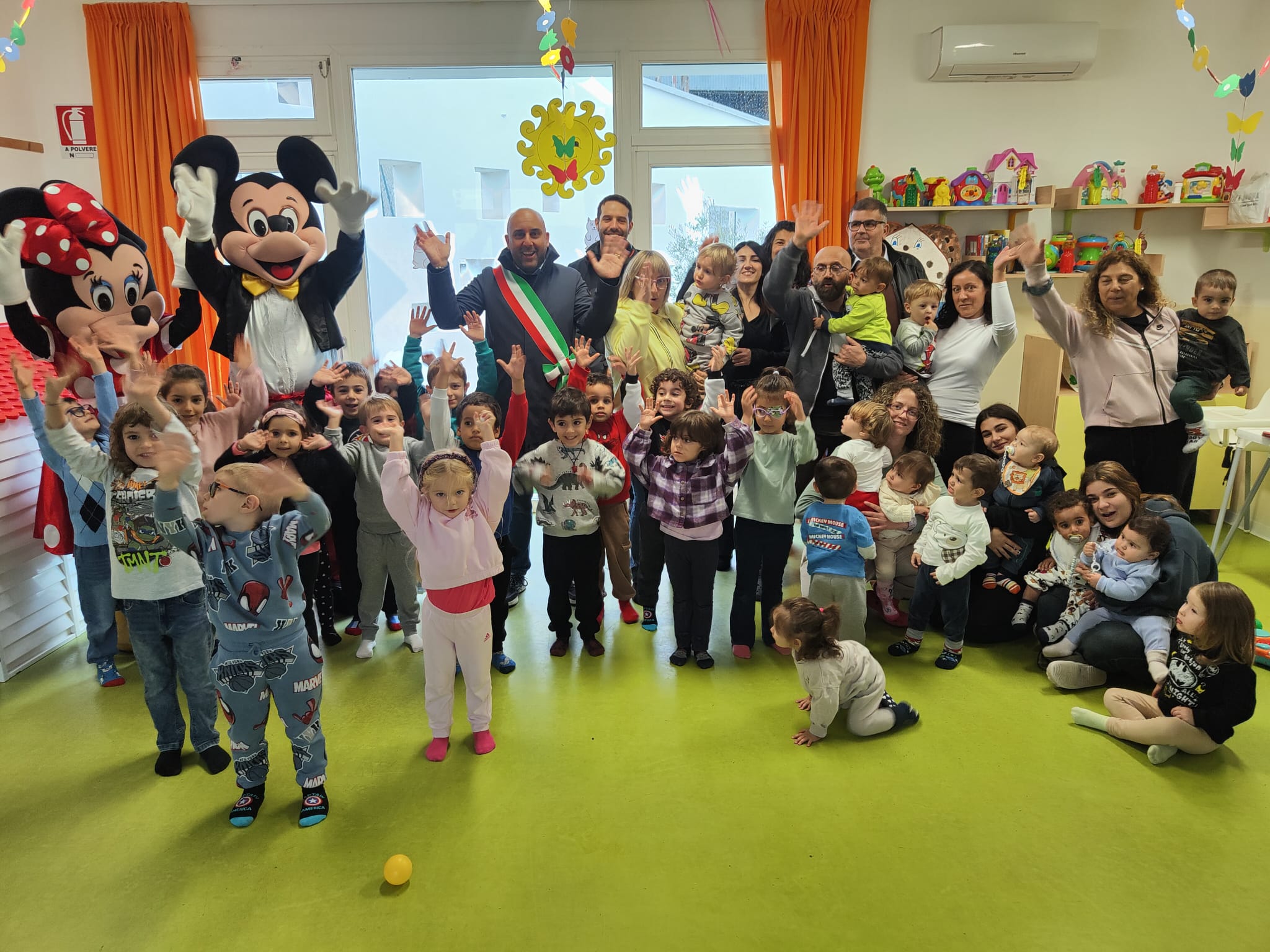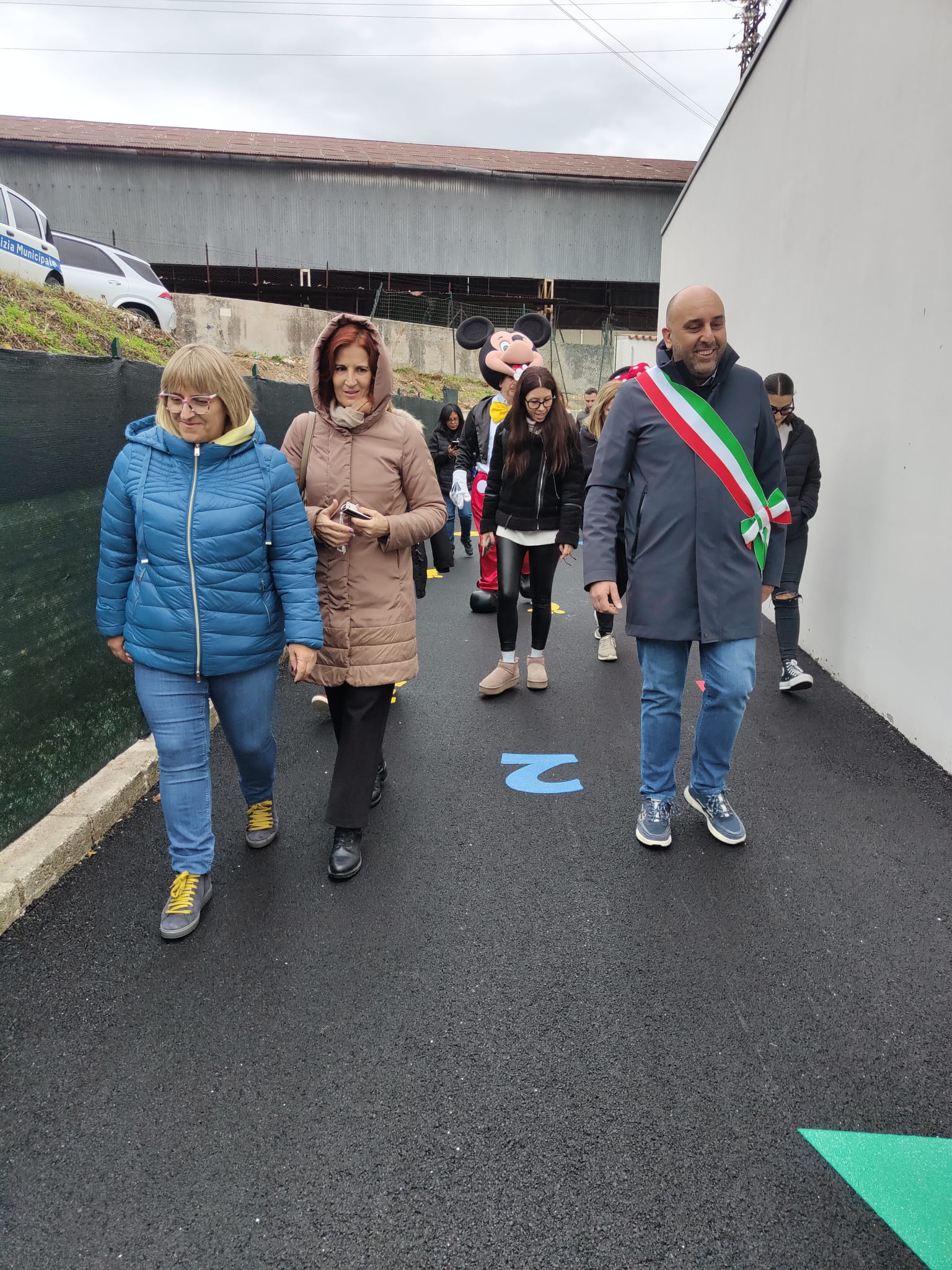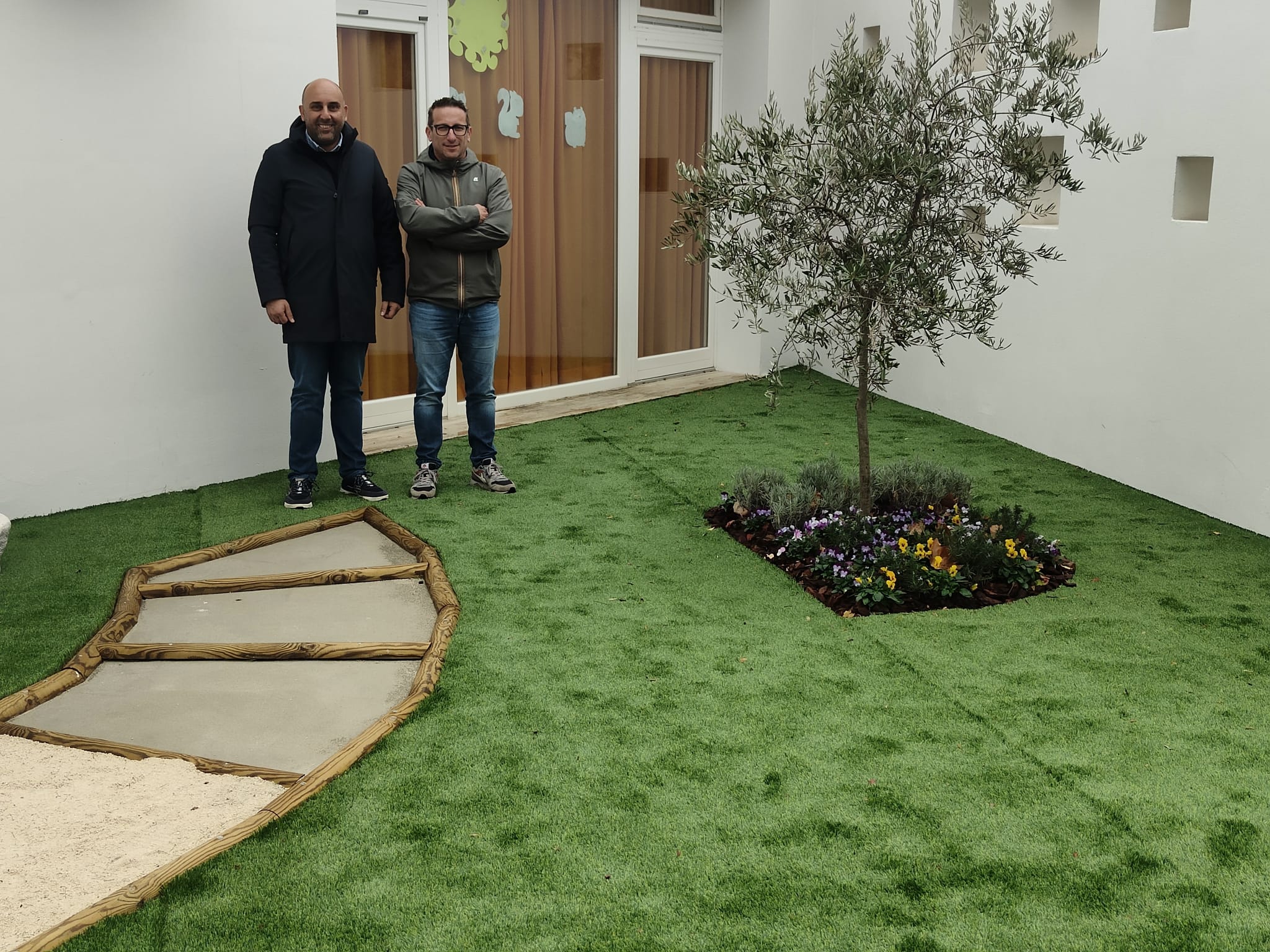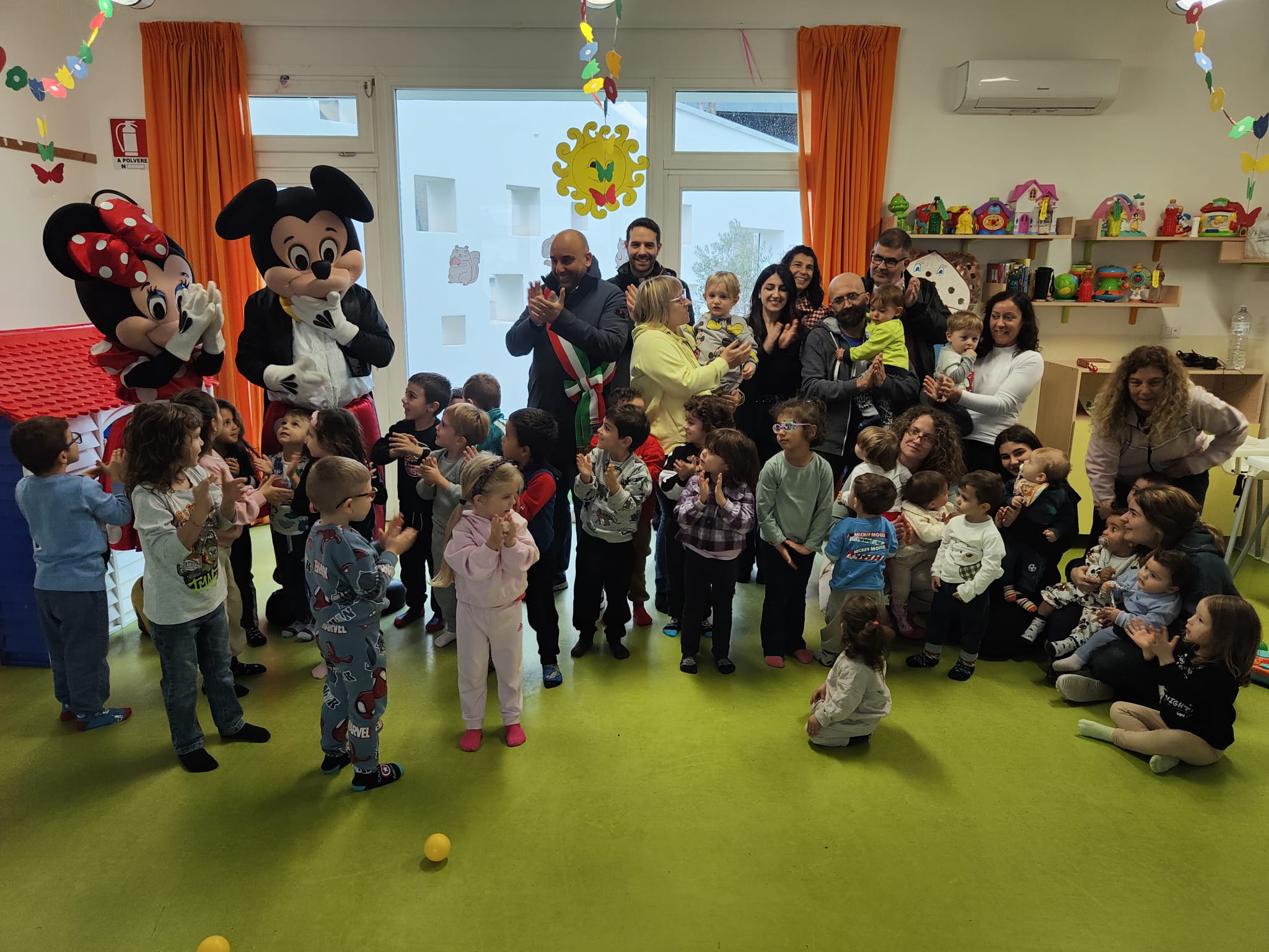 La voglia è quella di tornare bambini e calpestare il prato verde del giardino sensoriale con alberi da frutto, mandarino, arancio, limone e melograno, violette multicolori e piante aromatiche, con piccole vasche tattili di pietrisco e sabbia, un nuovo ingresso asfaltato e un percorso educativo di simboli e numeri colorati, inaugurati stamani dal sindaco Giovanni Mancini e dall'Amministrazione comunale che ha trasformato in realtà il progetto educativo comunitario da zero a 6 anni "Semi di futuro".