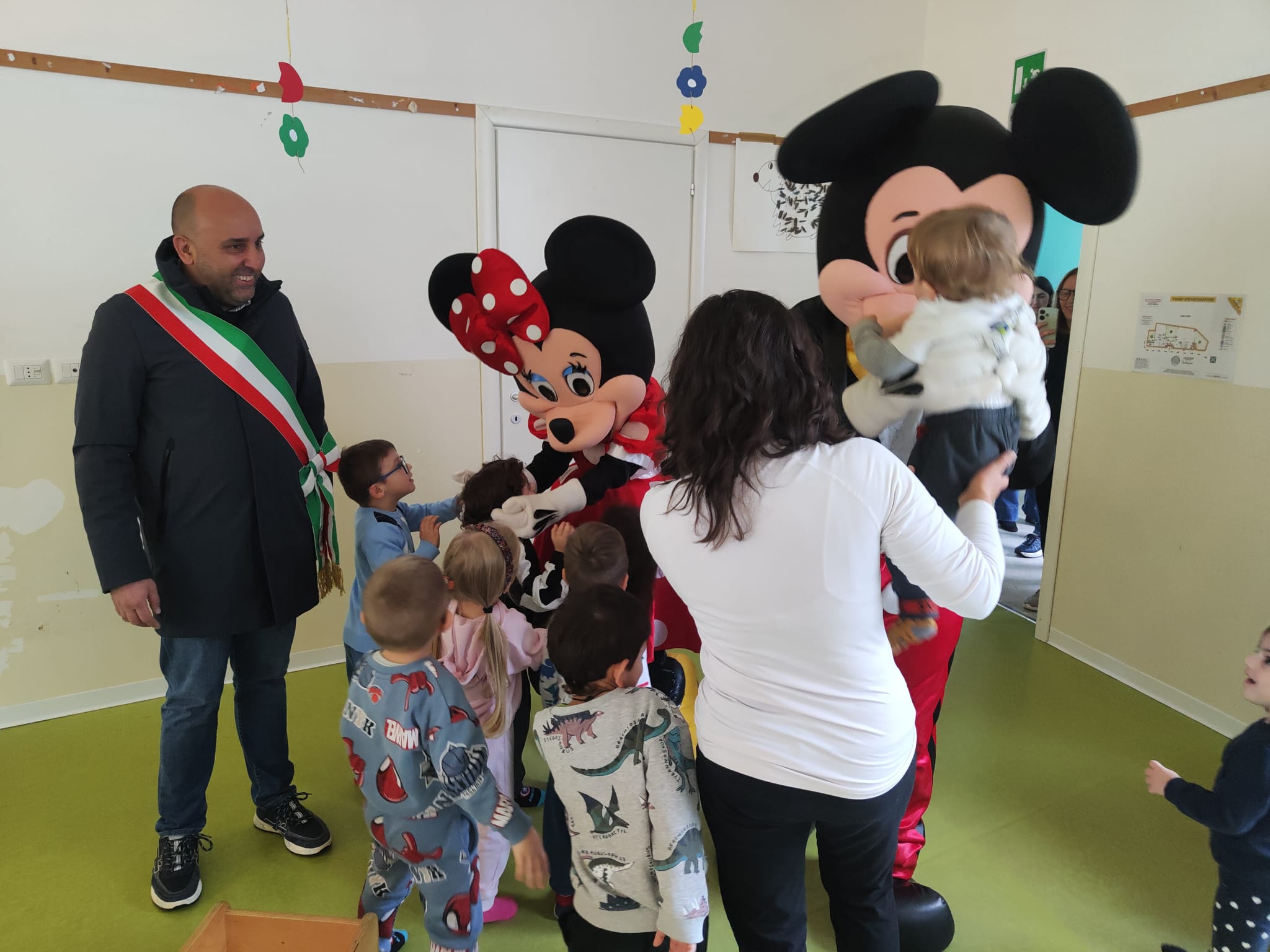 Topolino e Minnie hanno furoreggiato tra i bambini che li hanno accolti con grida di giubilo, battimani e sorrisi.