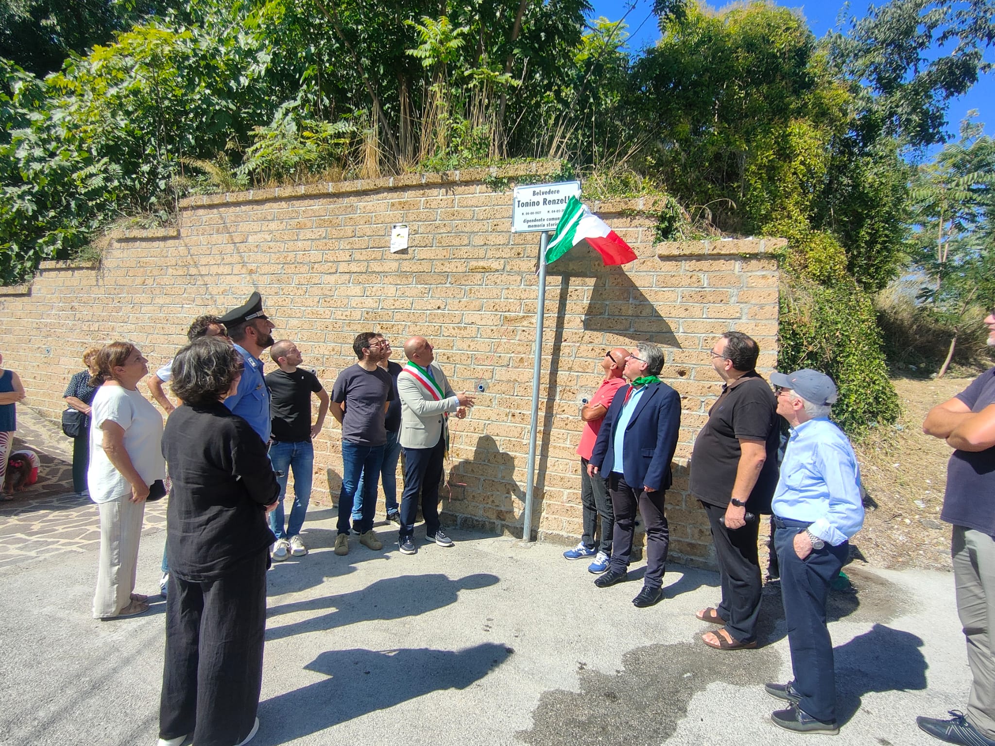 Il sindaco Giovanni Mancini, affiancato dal vice Piero Di Giulio, dal presidente del Consiglio comunale Marco Di Nicolantonio, dall'assessore Valeria Argentieri che ha coordinato i lavori e dal consigliere Silvio De Dominicis, stamani ha inaugurato il belvedere e scoperto la targa insieme ai familiari di Renzella, i figli Guido e Jolanda e i nipoti Antonio e Francesca, Pierpaolo e Valerio.