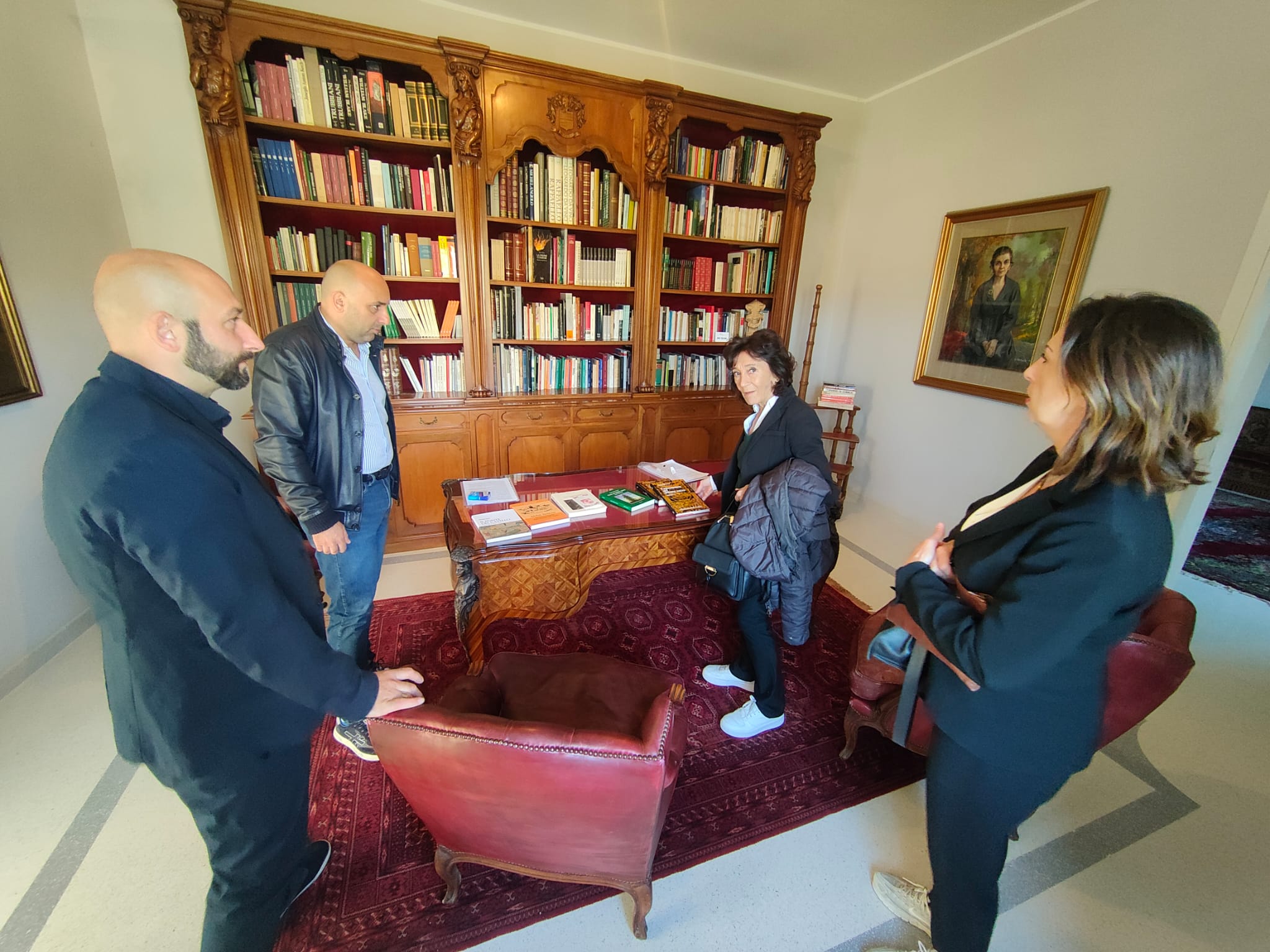 Mancini ha voluto visitare lo studio di Corrado Gizzi dove è custodito il suo patrimonio librario e i suoi scritti, compresi, in un altro settore, due volumi sull'Astronomia Dantesca.