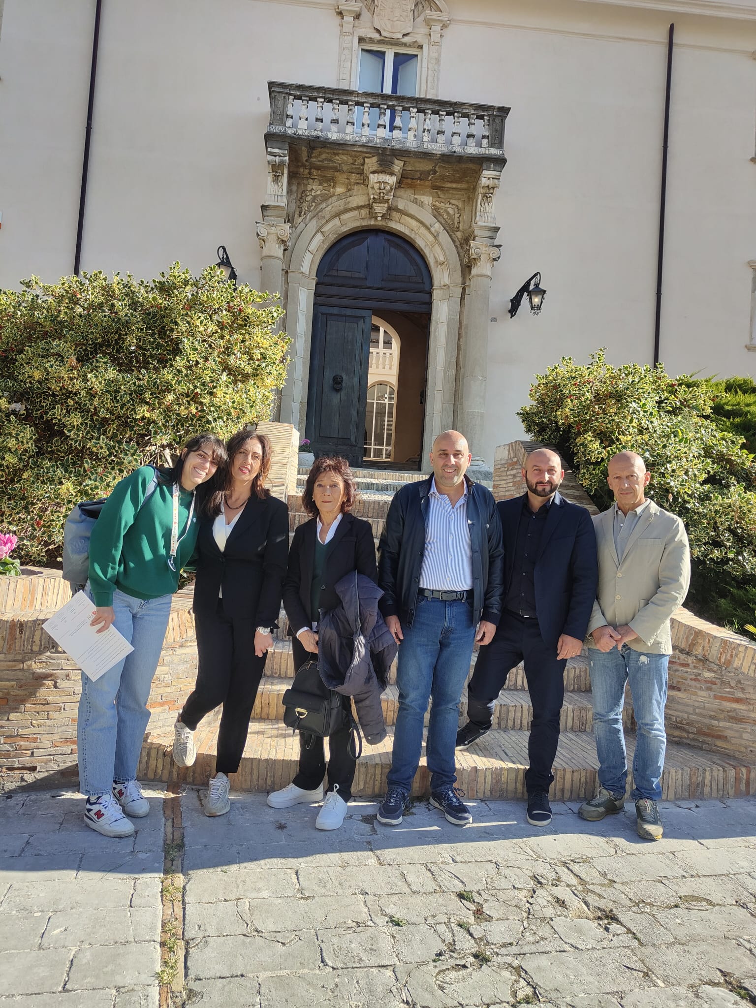 Col sindaco, il responsabile della struttura, Lorenzo Serafini, a capo del brand Castello Gizzi Events, che sta dando nuova vita e nuova linfa all'edificio appartenuto a due famiglie che hanno fatto la storia del territorio, i Mazara e i Gizzi, e Giorgia Di Clemente, capo delegazione del Fai di Pescara.