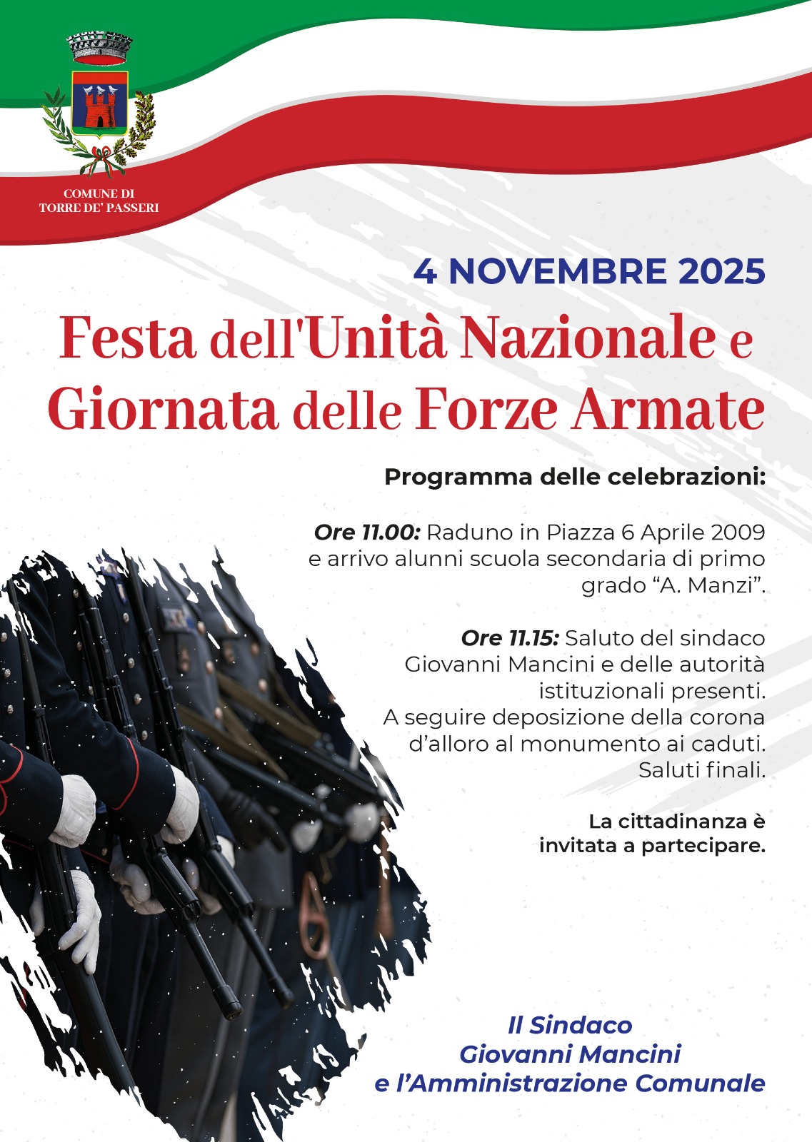 martedì 4 novembre 2025 ci riuniamo per celebrare la Giornata delle Forze Armate. Le notizie che ci giungono dai focolai di guerra nel mondo preoccupano e stimolano a profonde riflessioni sul sacrificio personale, umano, professionale, di tutti coloro che indossano un’uniforme. È nostro dovere, come comunità, sostenere tutte le Forze Armate nel loro quotidiano impegno a difesa dei popoli.