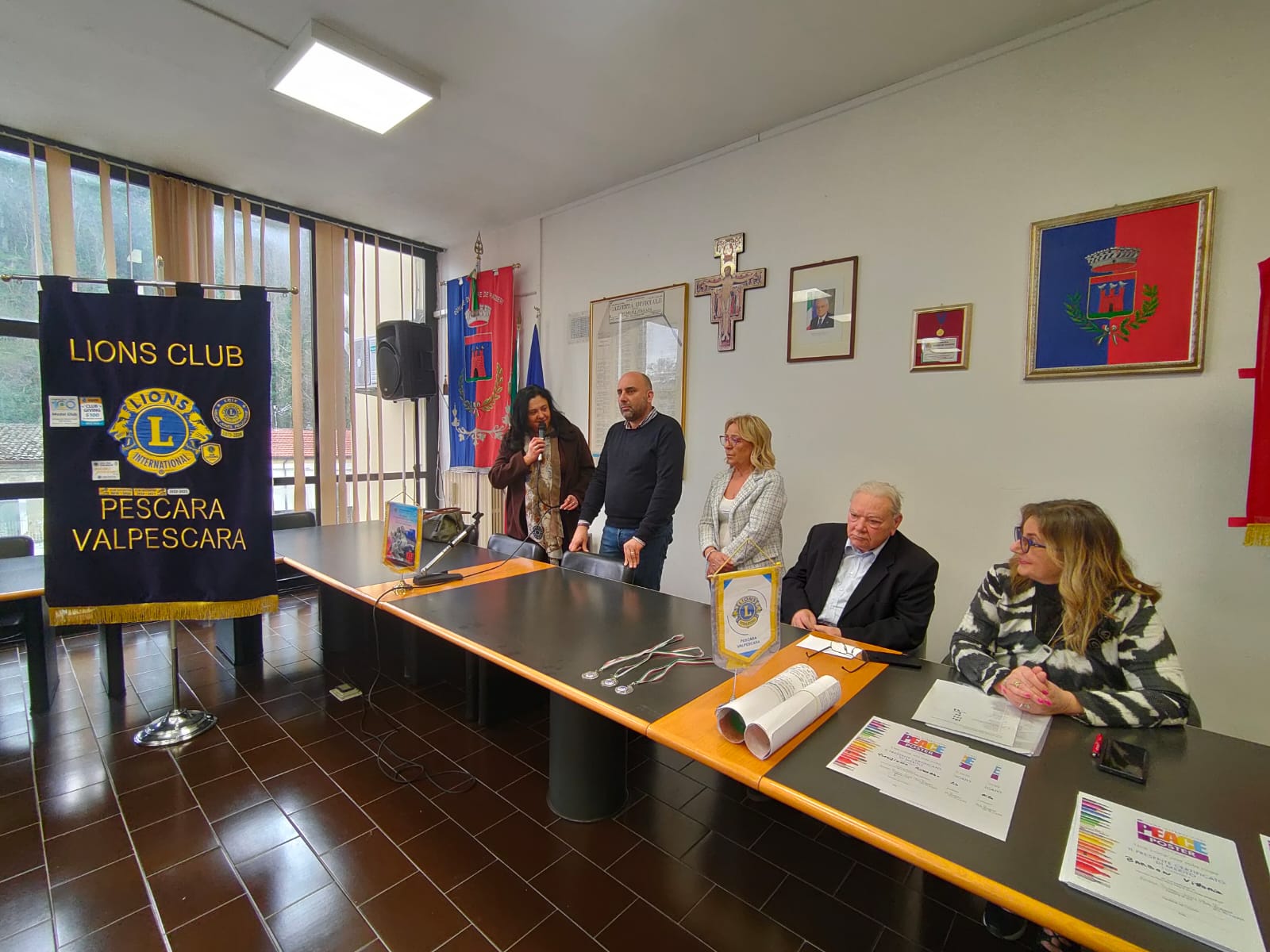 L'evento è stato organizzato dal Lions club Pescara-Valpescara, presieduto da Luciana Picciani, che ha coordinato i lavori con il professor Eliseo Marrone (storico preside dell'Aterno di Pescara), e Maria Grazia Valentini, officer distrettuale del Poster per la pace. L'iniziativa invita i giovani tra gli 11 e i 13 anni (coinvolgendo oltre 350mila partecipanti di 75 Paesi del mondo) a rappresentare visivamente, attraverso disegni su carta, come l'umanità, pur nelle differenze, possa unirsi per costruire un mondo pacifico e armonioso. Il tema enfatizza la collaborazione, la solidarietà e la comprensione interculturale e l'obiettivo è sensibilizzare i giovani al valore della pace attraverso il disegno e la creatività.