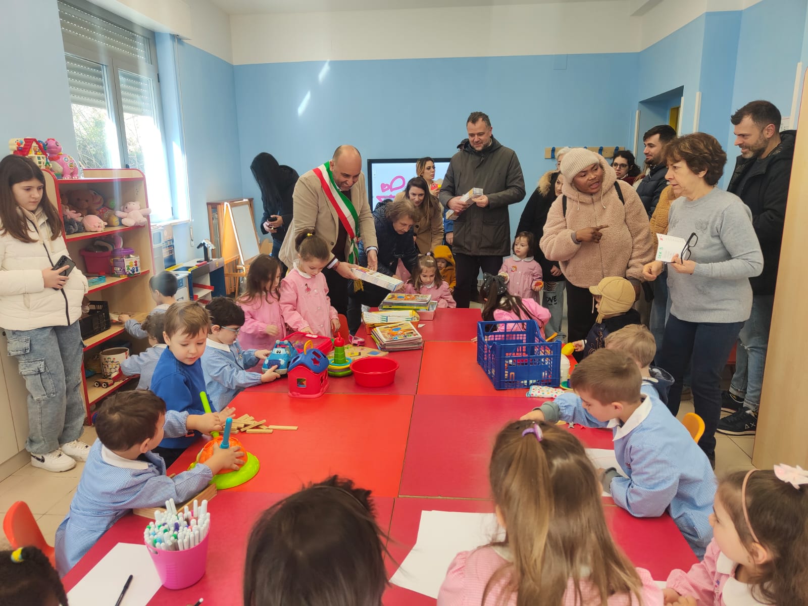 Nella coloratissima scuola stamani sono entrati oltre 40 bambini provenienti dalla sede del comprensivo "Alberto Manzi" di via Garibaldi.