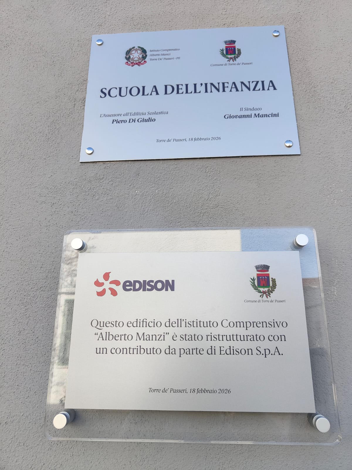 L'Amministrazione Comunale di Torre de' Passeri stamani ha inaugurato la rinnovata sede della scuola dell'Infanzia di via Dante Alighieri, ristrutturata con il contributo di Edison.