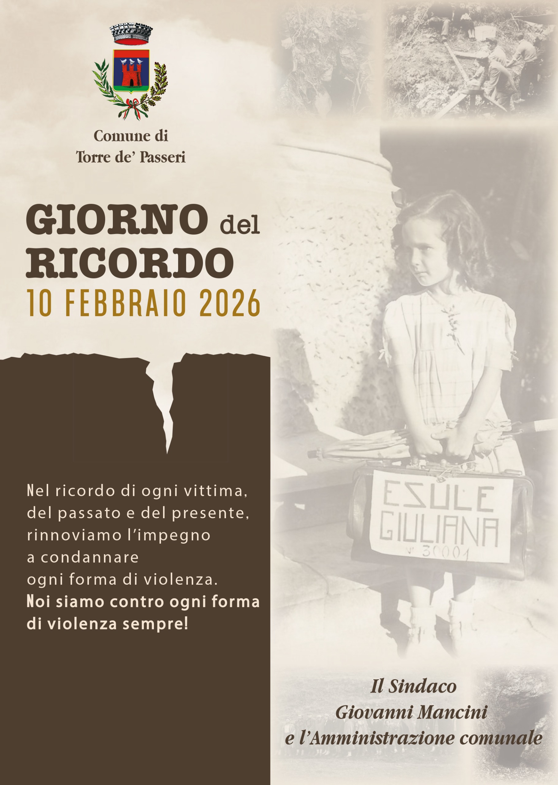 Nel Giorno del Ricordo l'Amministrazione Comunale di Torre condanna ogni forma di violenza