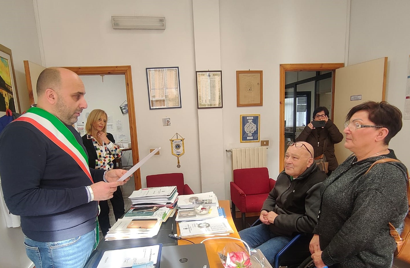 Il sindaco Giovanni Mancini stamani, in municipio, ha celebrato la prima promessa di matrimonio di Minuccio Di Marco e Immacolata Romeo.